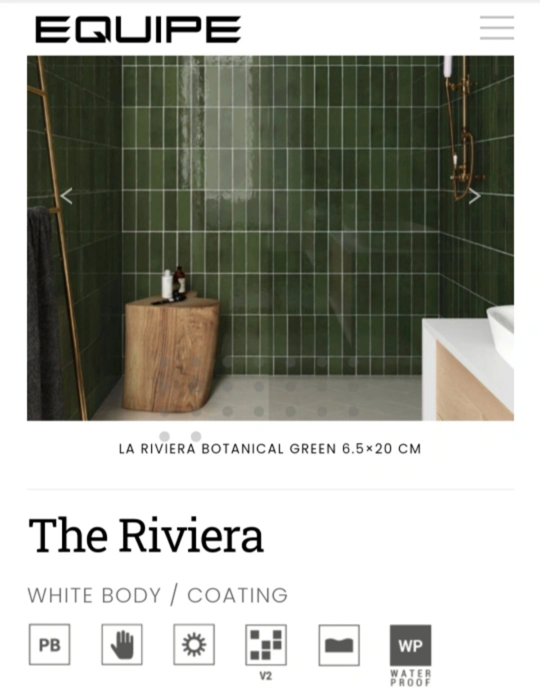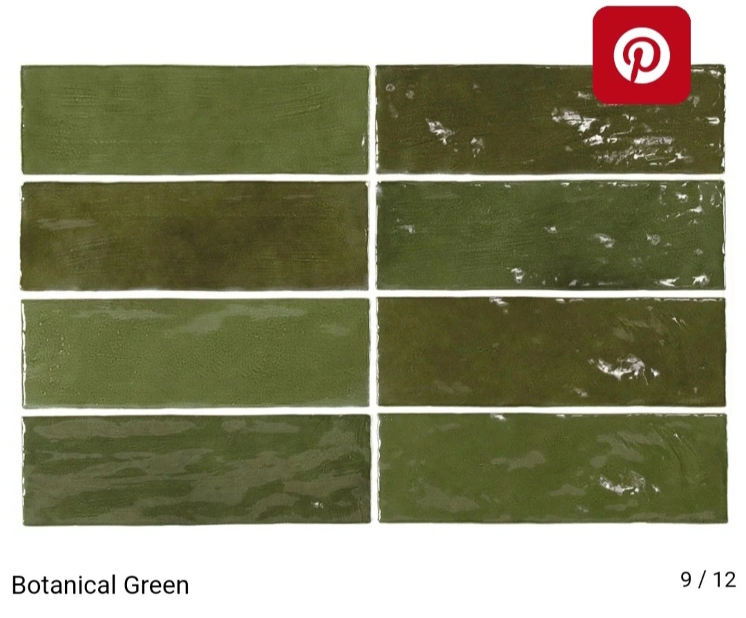 Green tiles, 6.5 x 20 cm, made in Spain. 2 Boxes available. $25 each