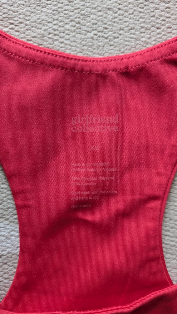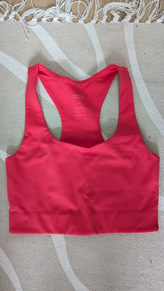 Girlfriend Collective Paloma sports bra in XS. Pink is a little darker in person.