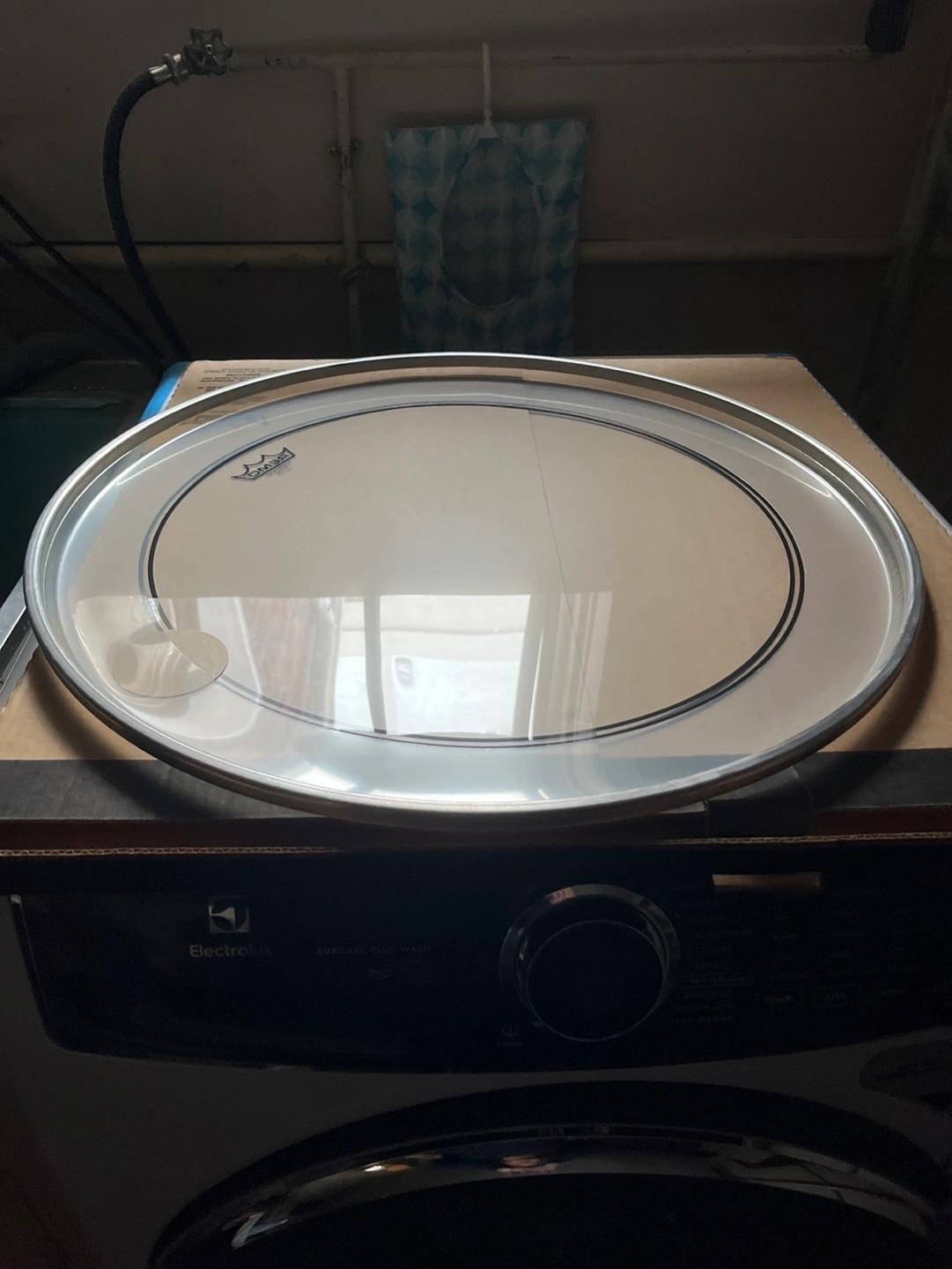 22 inch bass drumhead. Clear. 2-1/2 inch white impact patch.