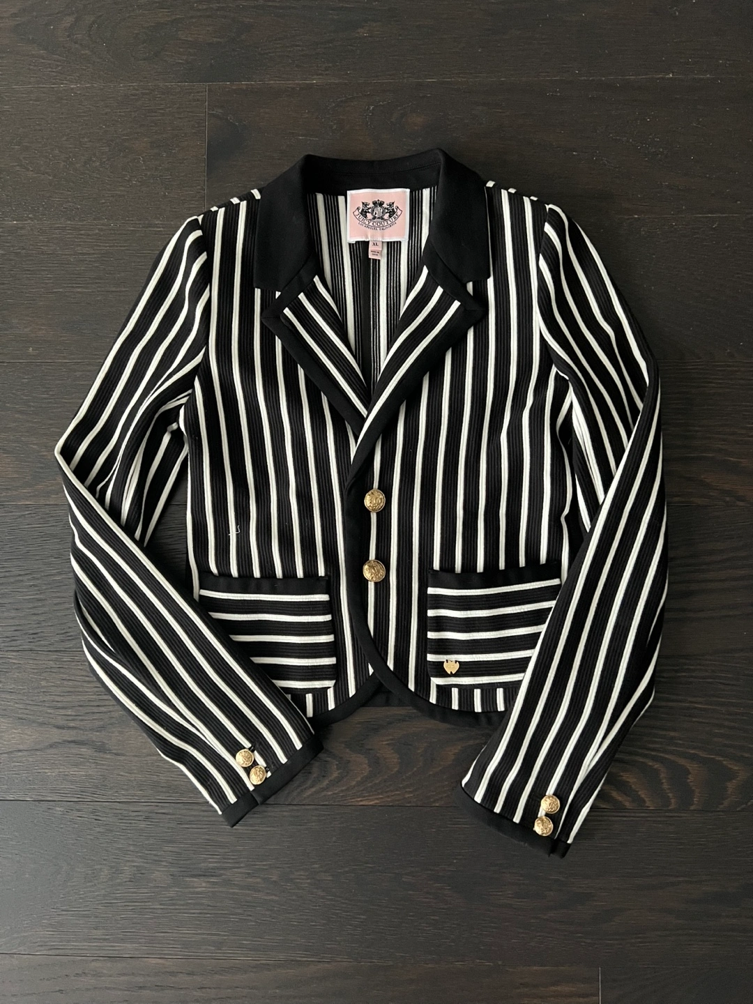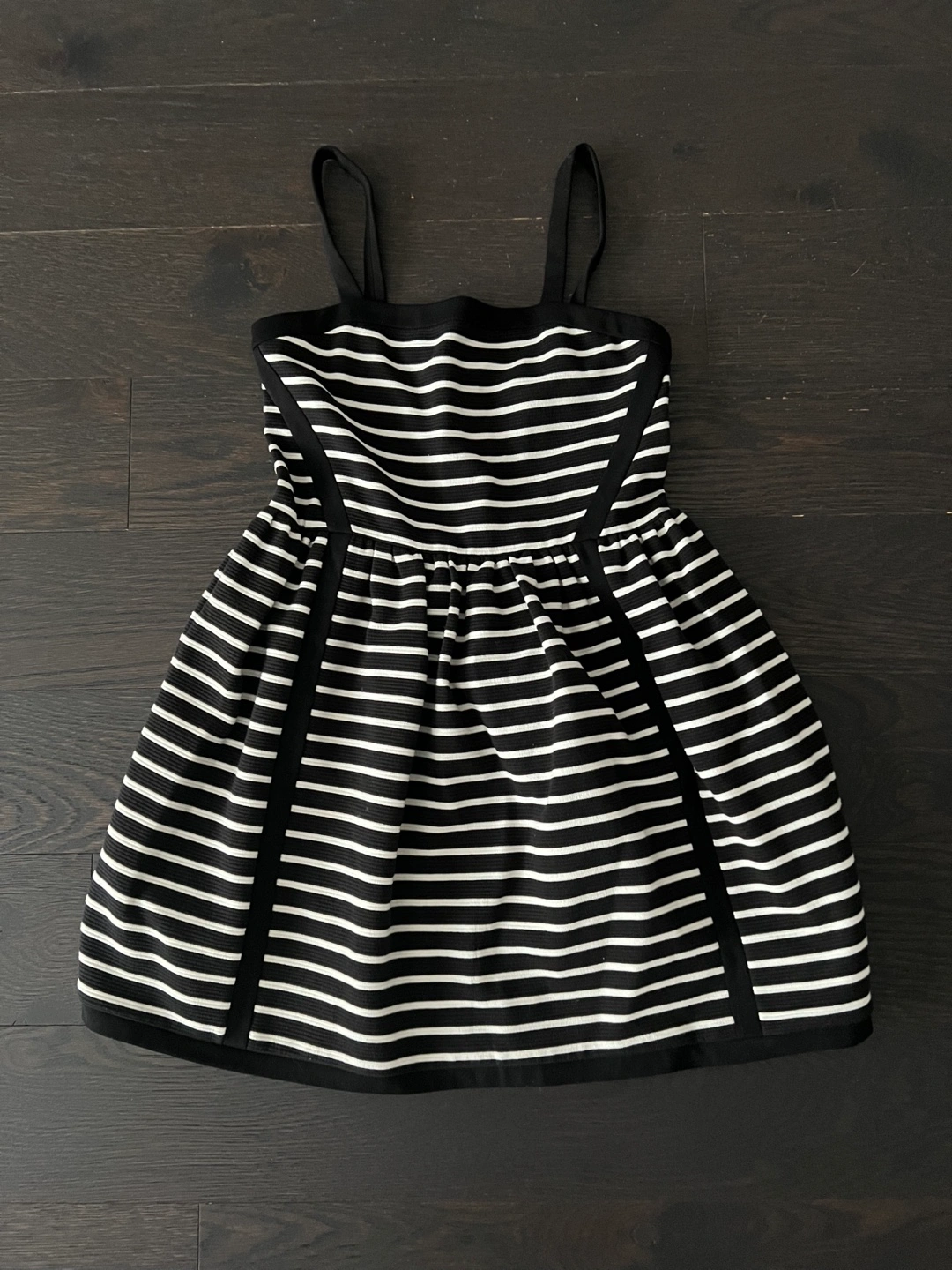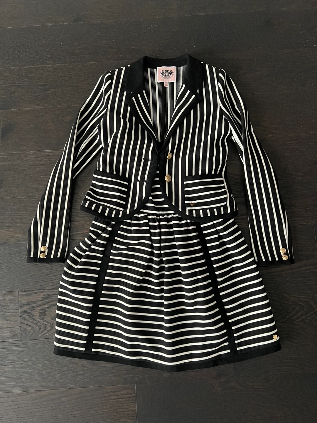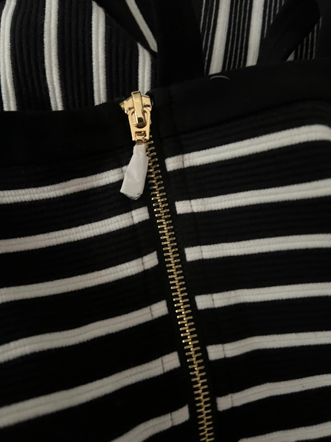 Black and white striped blazer dress. Long sleeves. Gold buttons. Gold zipper. Size XL. Brand new, still has the packaging on zipper.