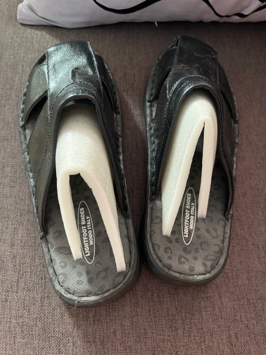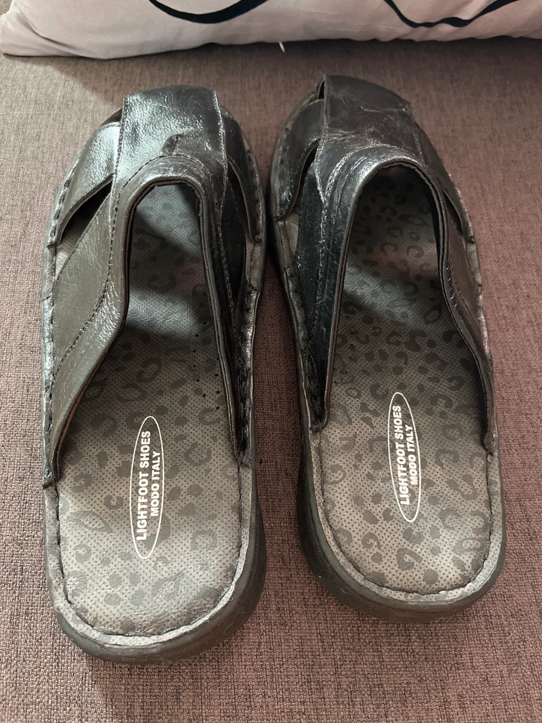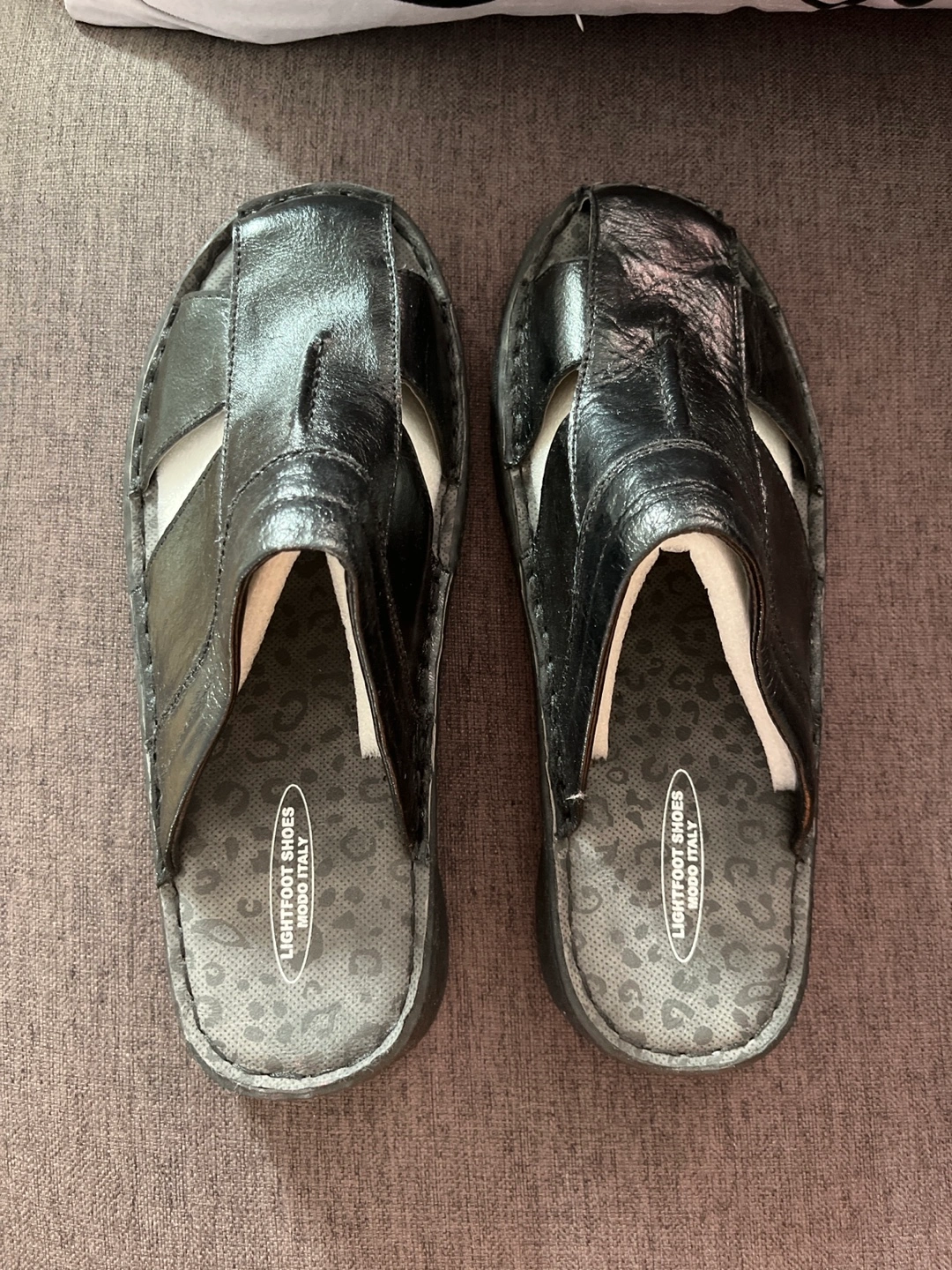 Black leather sandals made in Italy. Never worn. No box You can pick up by Carlton and Jarvis area
