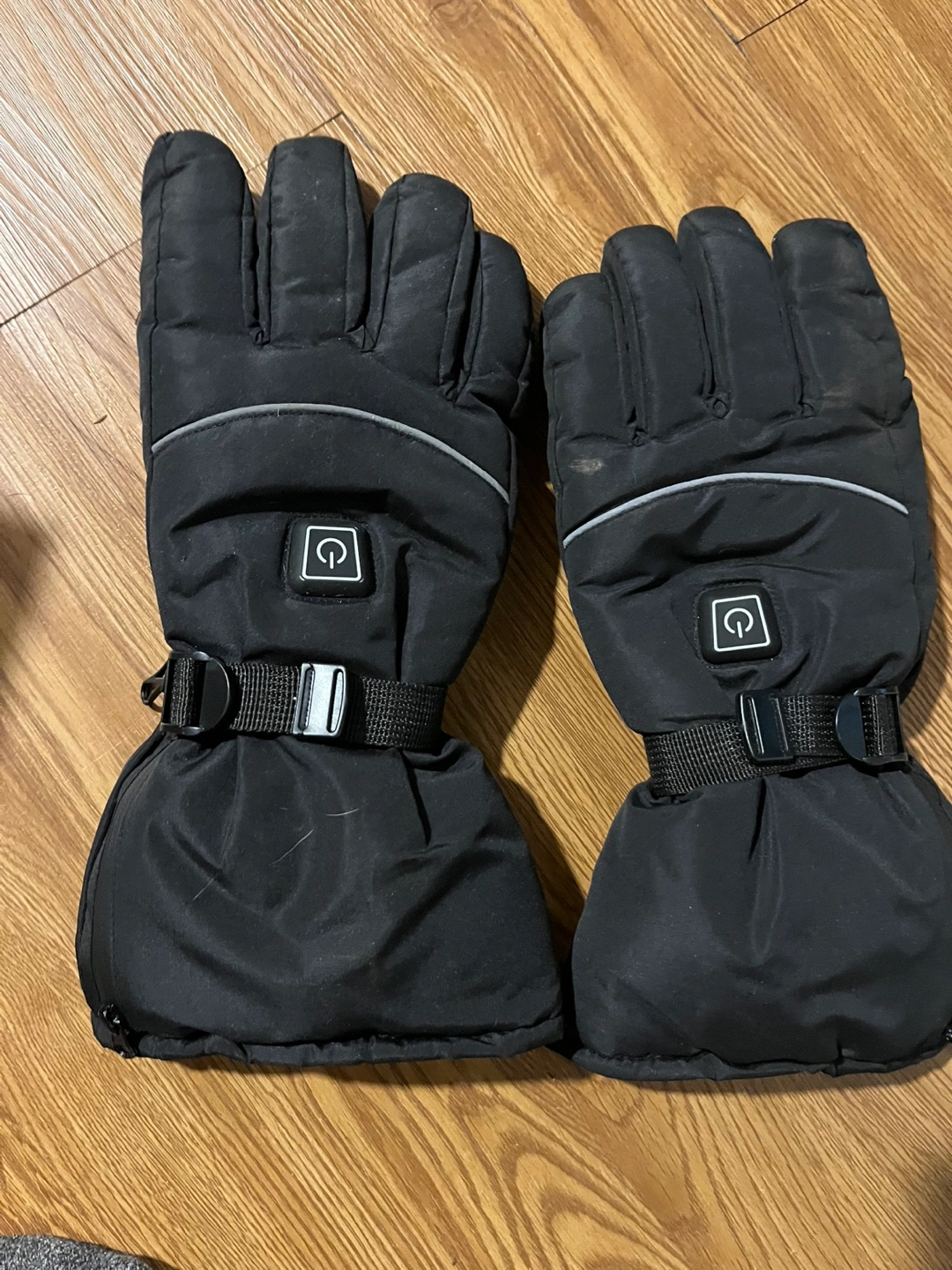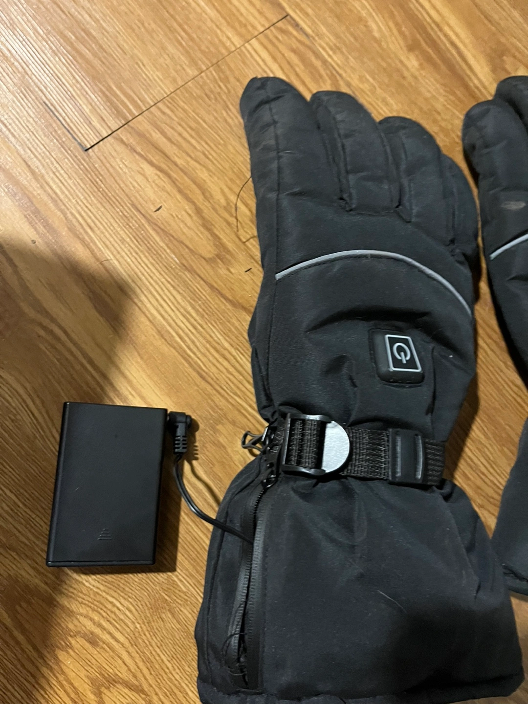 Black heated gloves with a battery pack (3 aa) Used but in good condition.