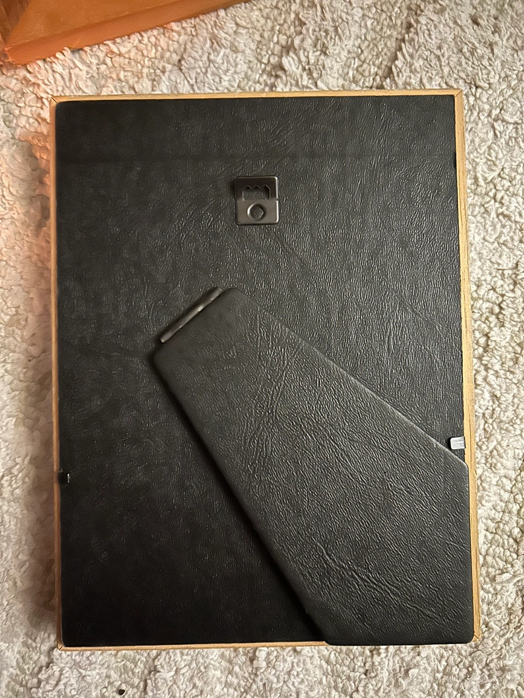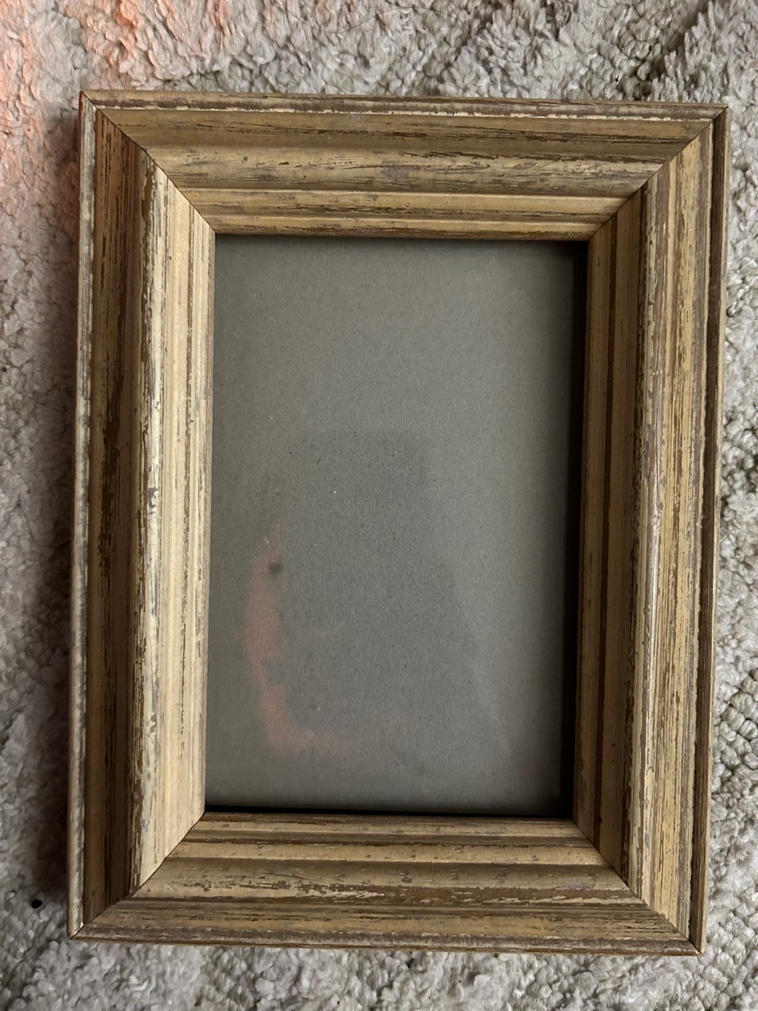 Rustic picture frame, has a stand and can be hung on the wall. Good condition.