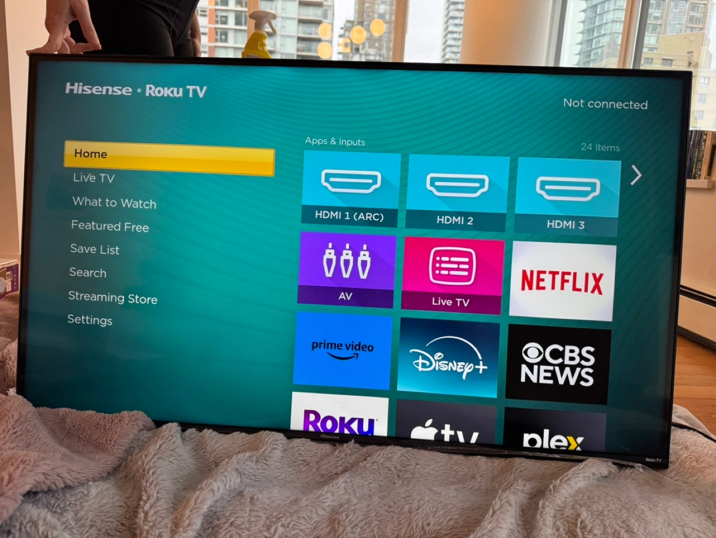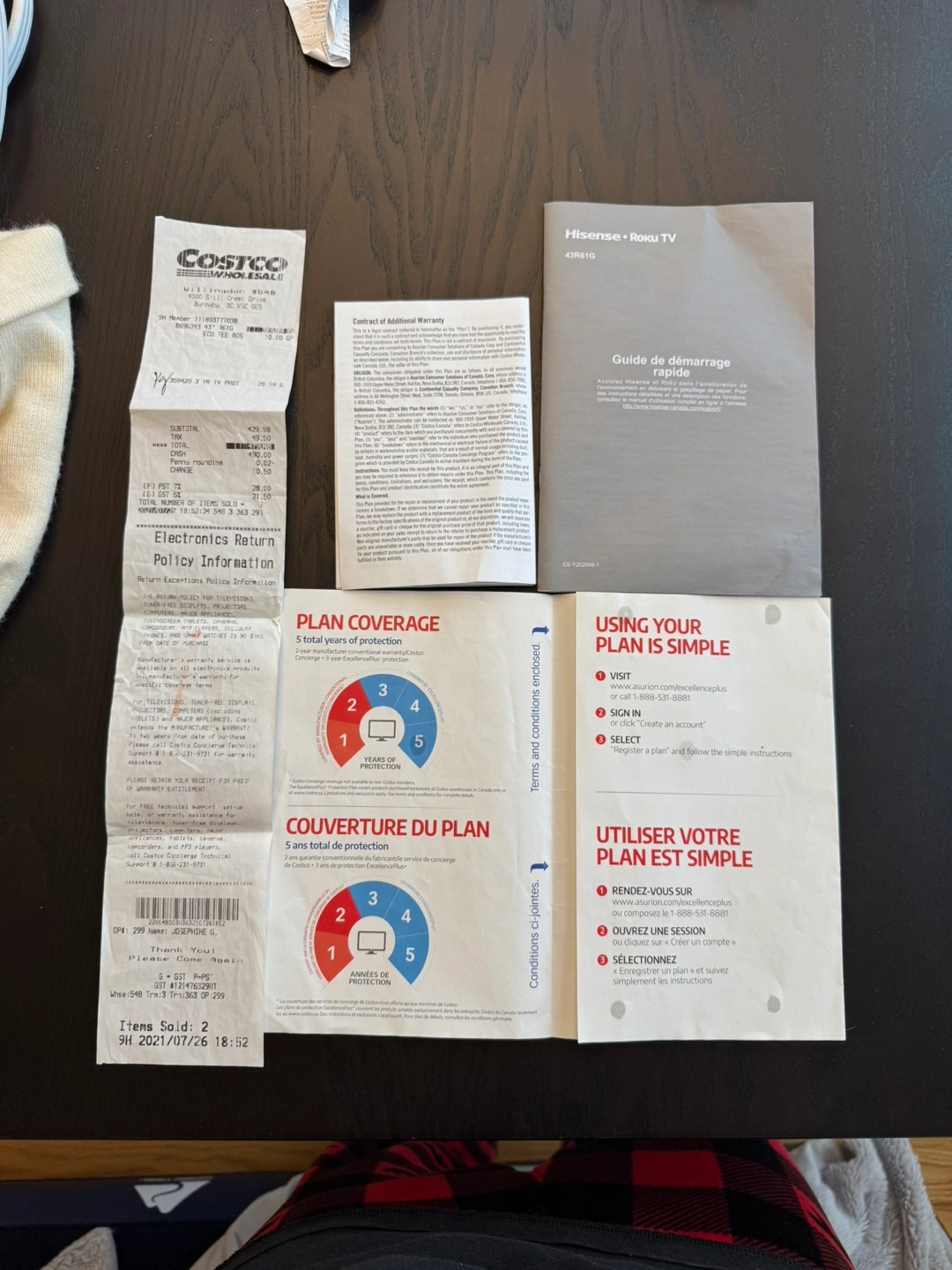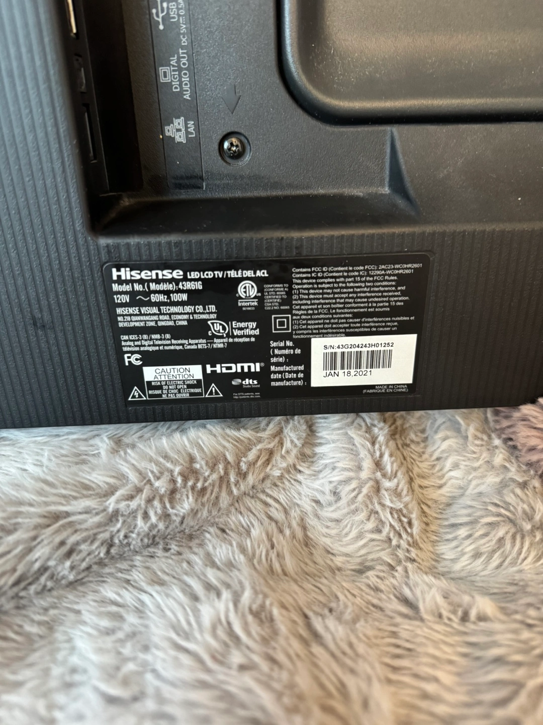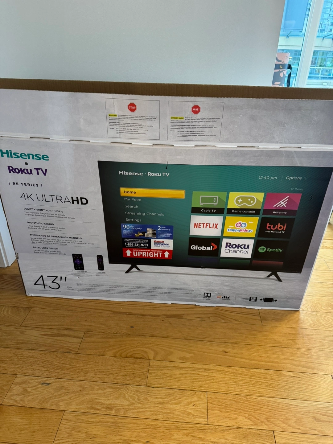 43 inch Smart TV, includes remote. I barely used it still with the plastic and everything. Comes with original box and paperwork warranty.