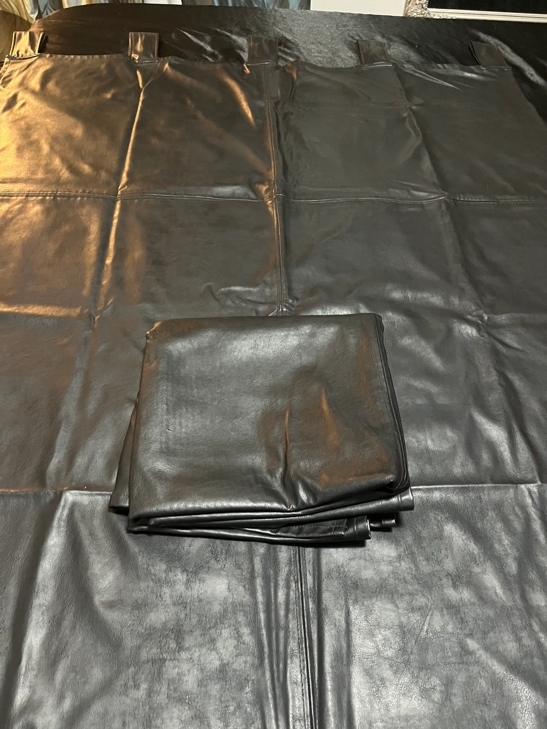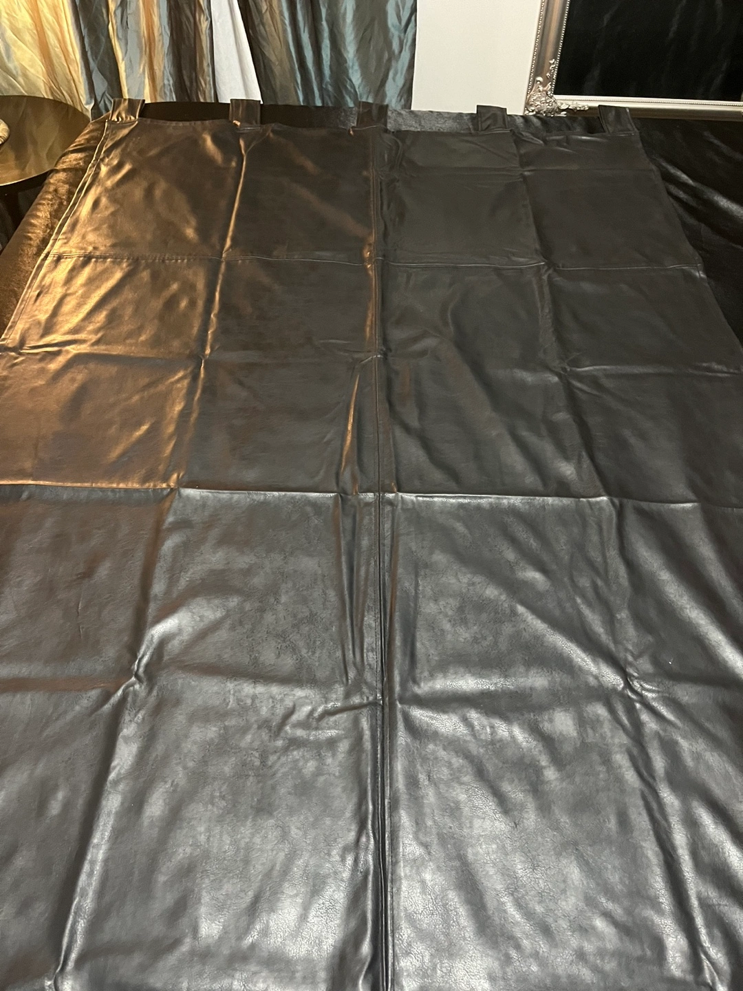 Black faux leather curtains with 4 grommets. Approximately 42 inches wide and 84 inches long. 2 panels. Block out light. Some colour has faded on the underside as expected from the sunlight otherwise perfect condition. You can pick up by Carlton and Jarvis area