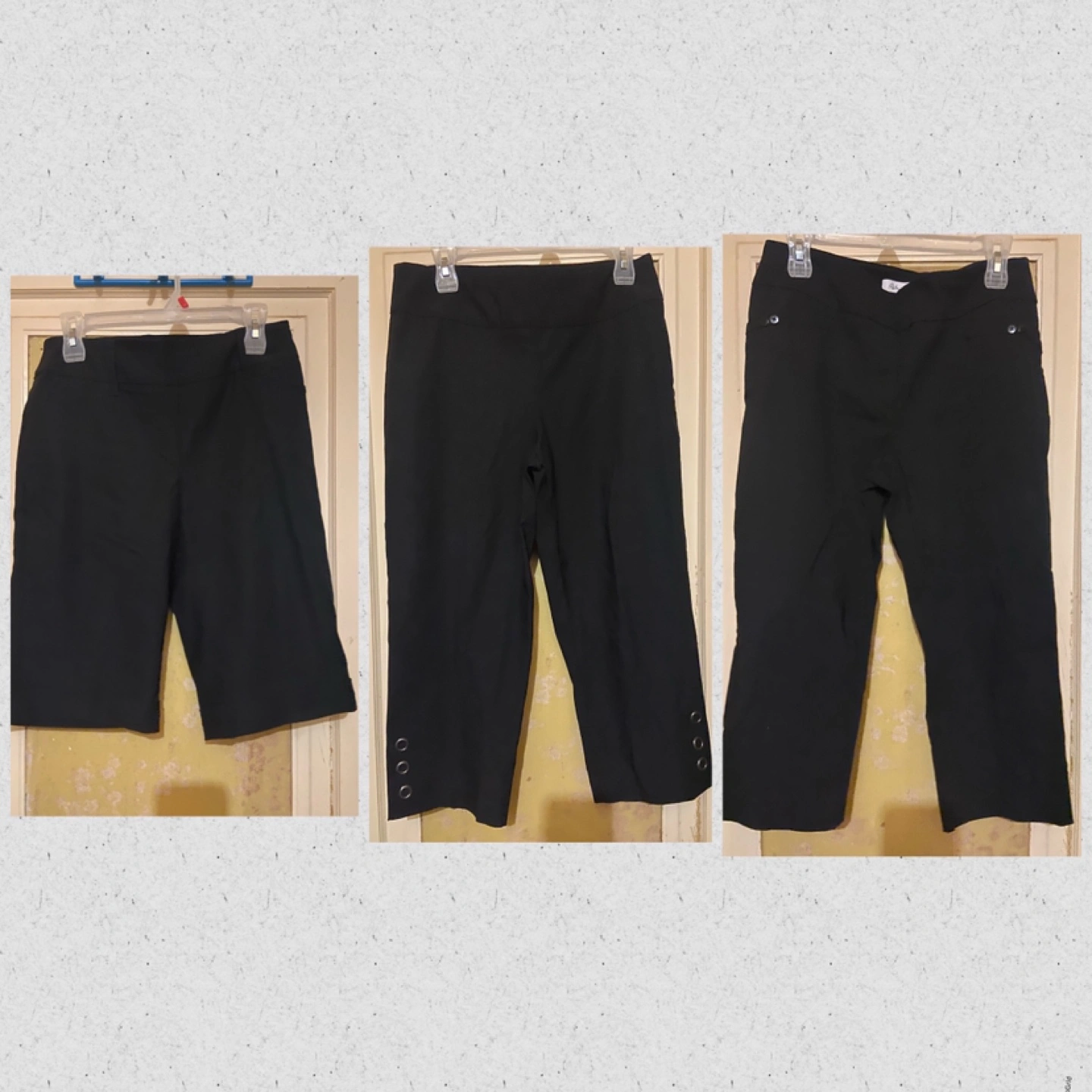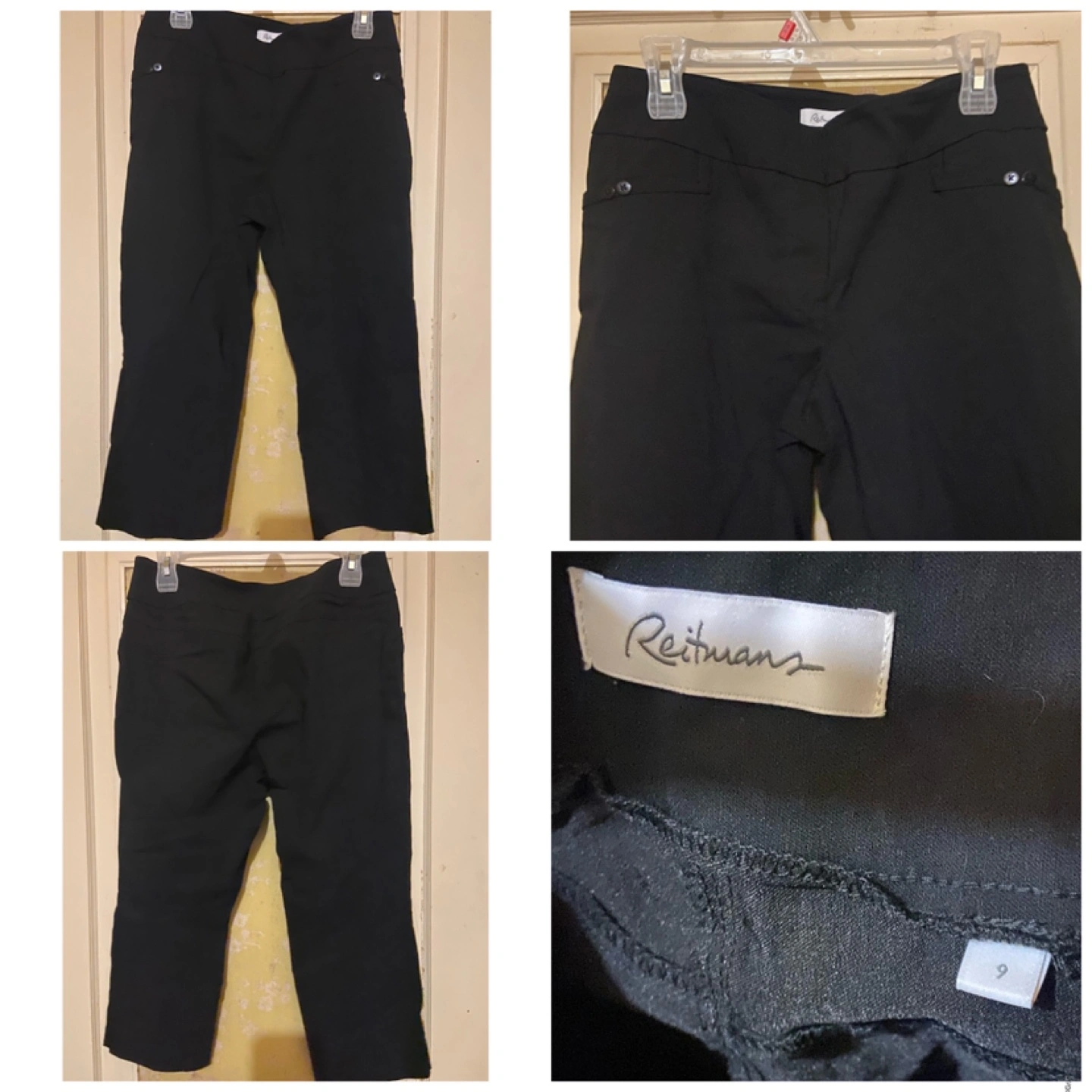 Reitmans Women’s pants size 7/ 8/ 9 Condition- Brand new no tags I’m very good condition. Colour- all pants are colour black A. #4 Reitmans Capris pants Size- 7 Material- 76% rayon/ 21% nylon/ 3% spandex B. #5 Reitmans Capris pants Size- 8 Material- 76% rayon/ 21% nylon/ 3% spandex C. #6 Reitmans Capris pants Size- 9 Material- 73% rayon/ 24% nylon/ 3% spandex Cash Payment No Refunds / Exchange No try ons, No trading No holds. All purchases are Finally Sale From a Smoke Free home First come, First Serve Fast pick up Price-$10 for each pair Cash only Pick up- In East York, Toronto Intersection Sammon ave and Coxwell ave. Or by Coxwell ave subway station