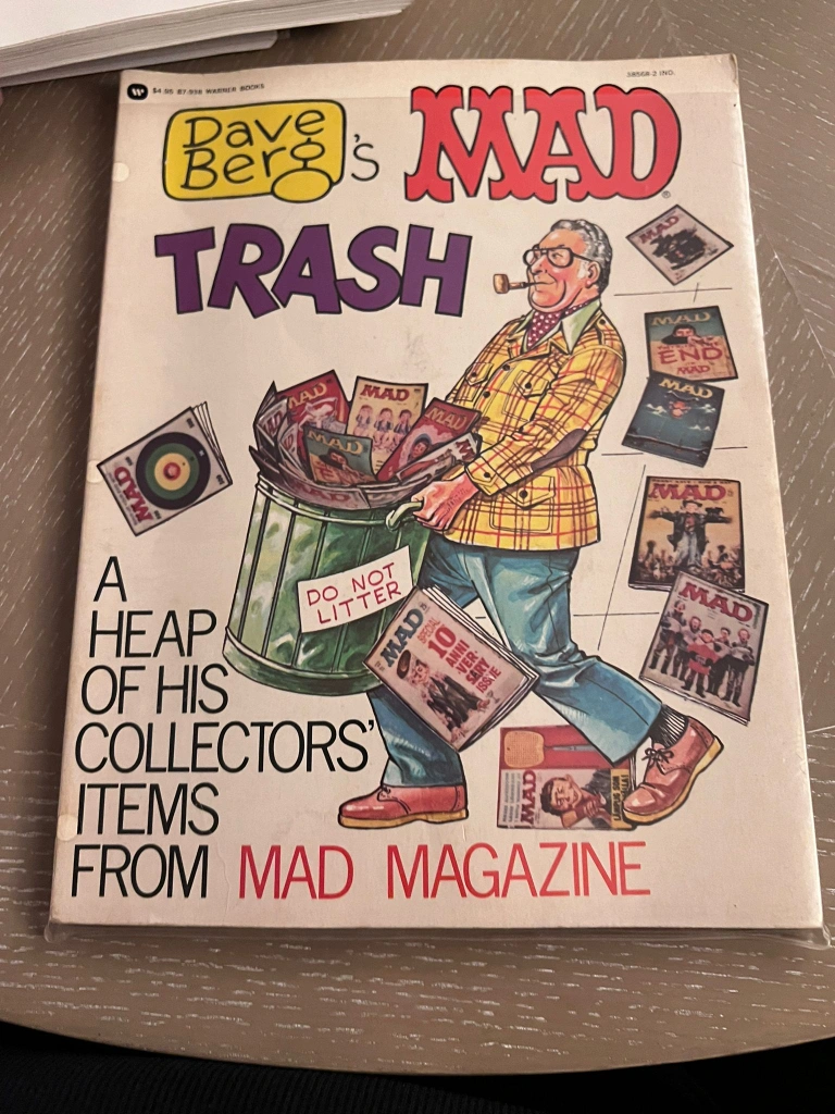 Vintage Mad Magazine Dave Berg’s Mad Trash Magazine Book. Kept in plastic cover/sleeve "This is a hilarious collection of some of acclaimed cartoonist Dave Berg's best work from Mad Magazine. Softcover, 8 1/2-in. x 10 1/2 -in., 160 pages, B&W."