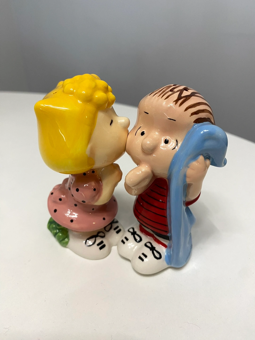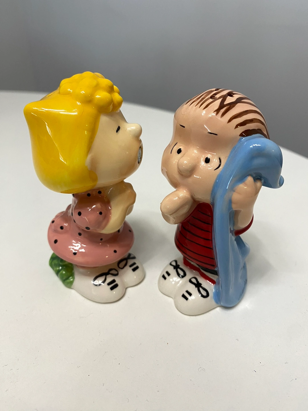Gently used Vintage ceramic Peanuts Linus & Sally Magnetic Salt & Pepper Shakers. Great condition. Unique item, perfect for Peanut collectors. Cash only.