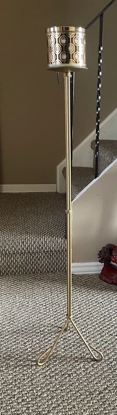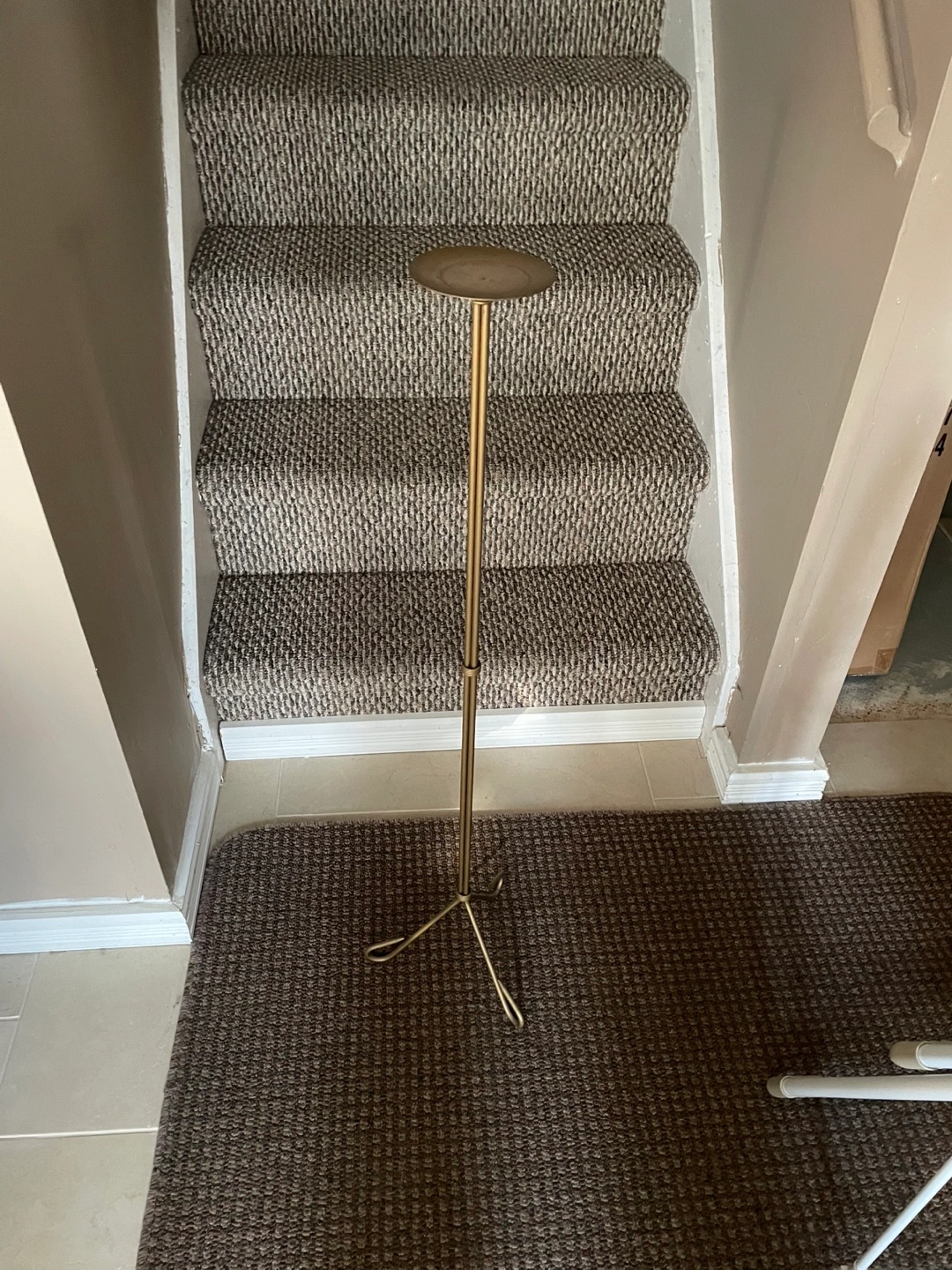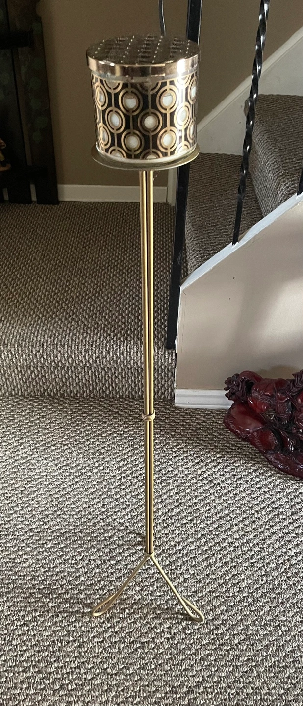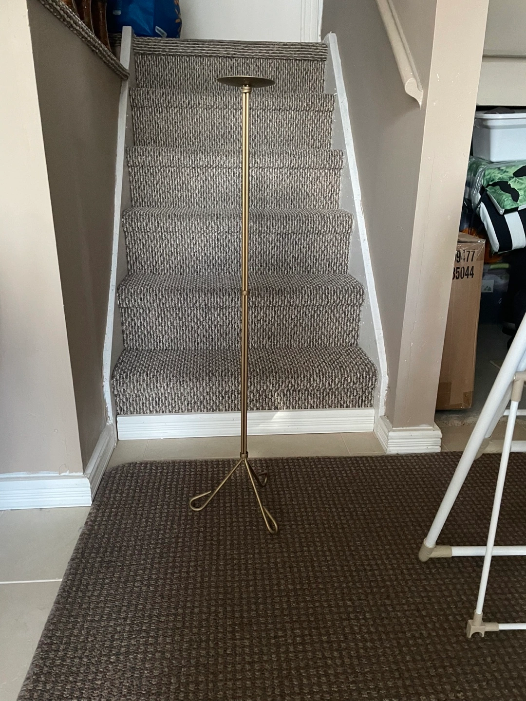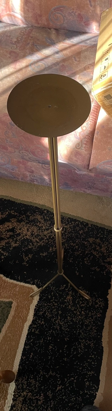 Tall gold candle stand. Three legs, one top plate. Can be used for candles or other decorative items. Candle Not Included