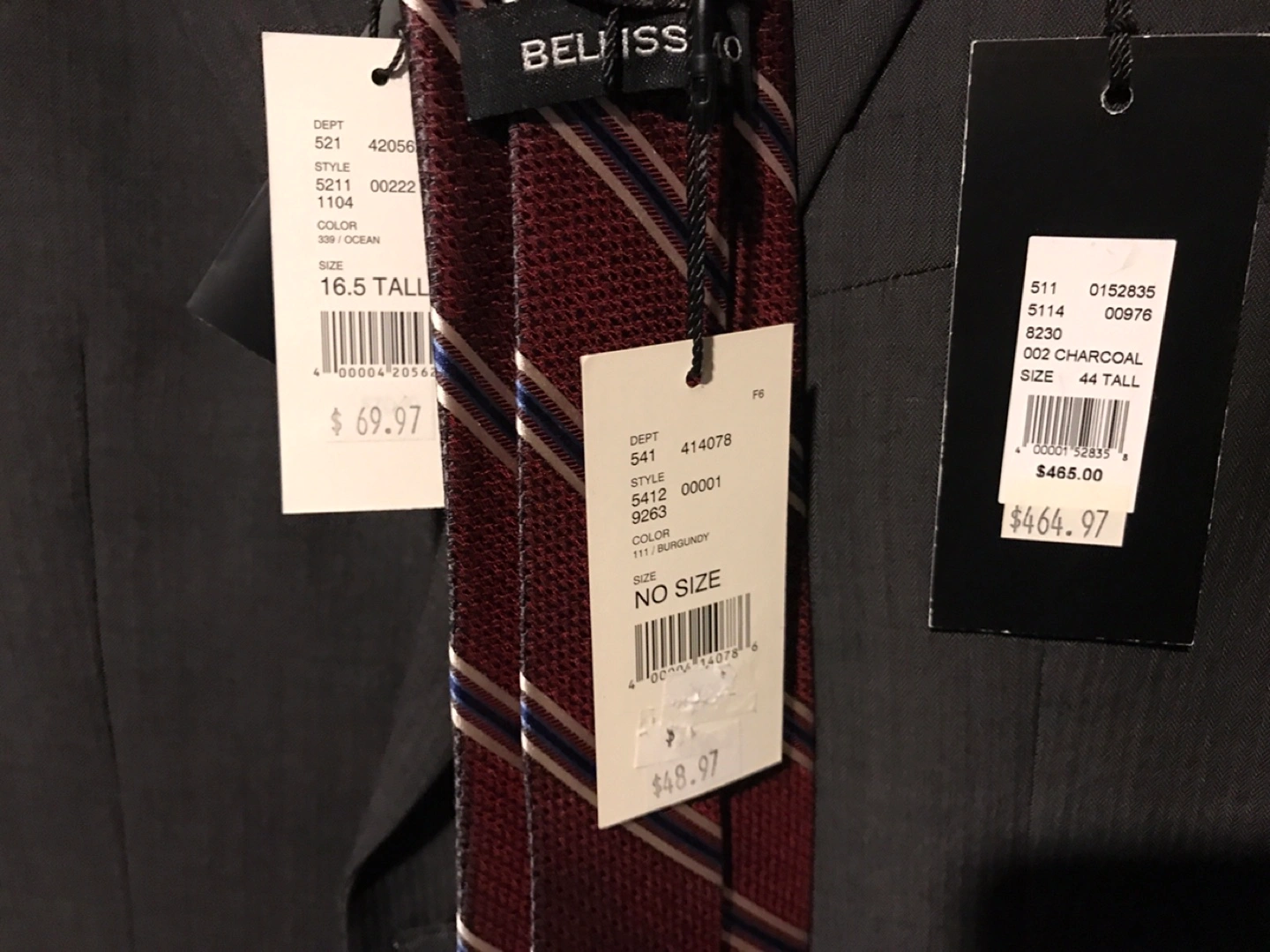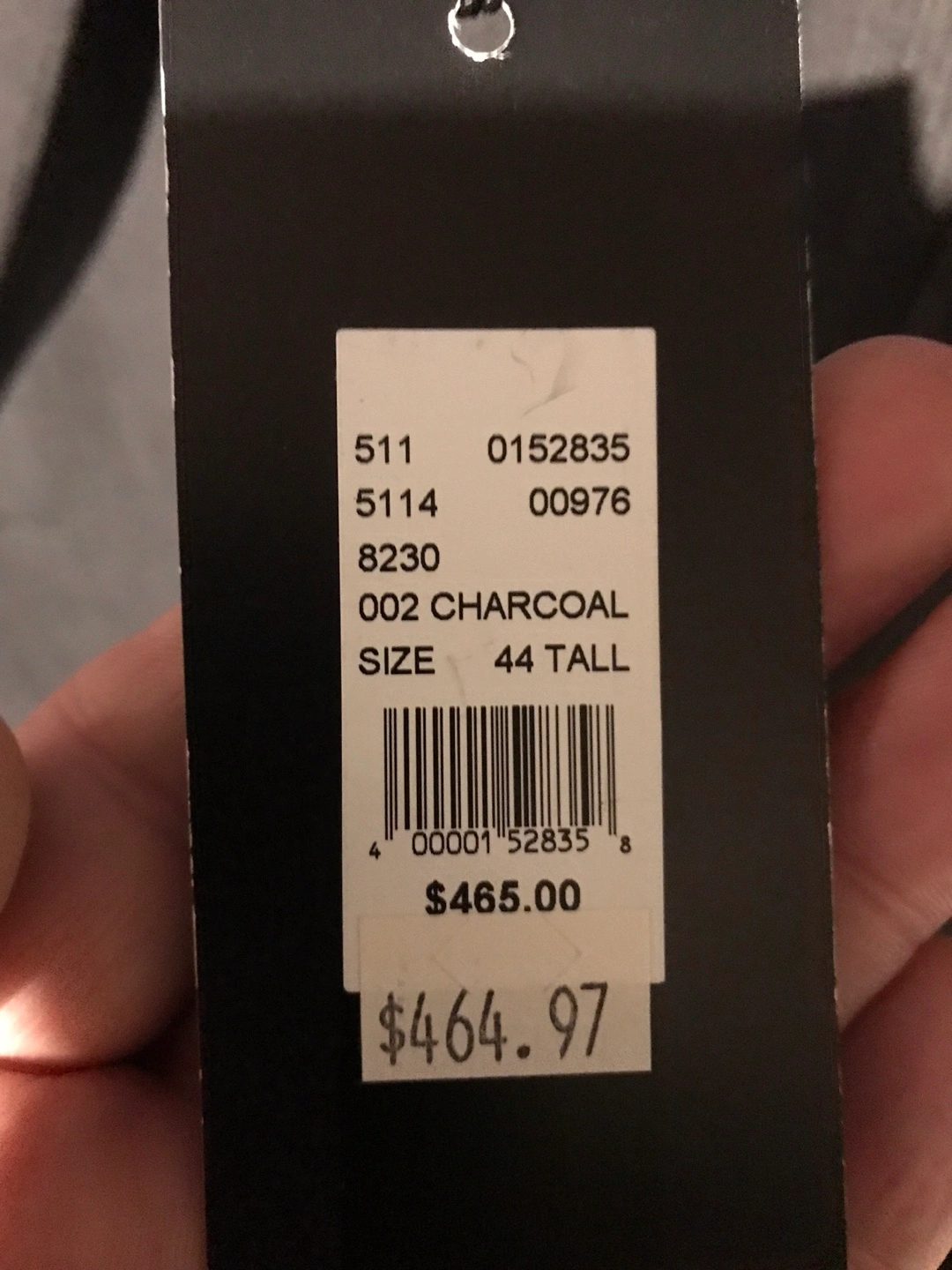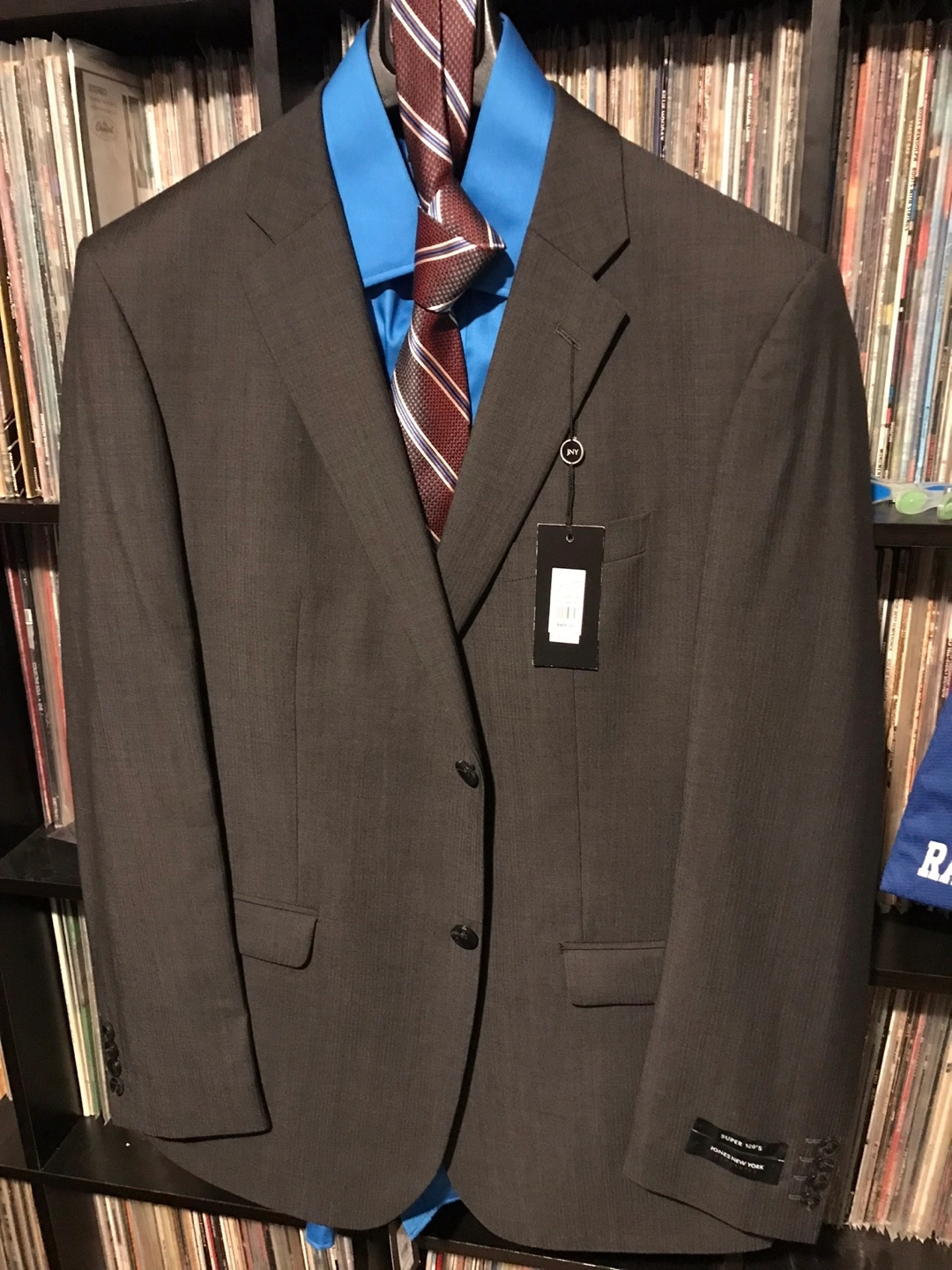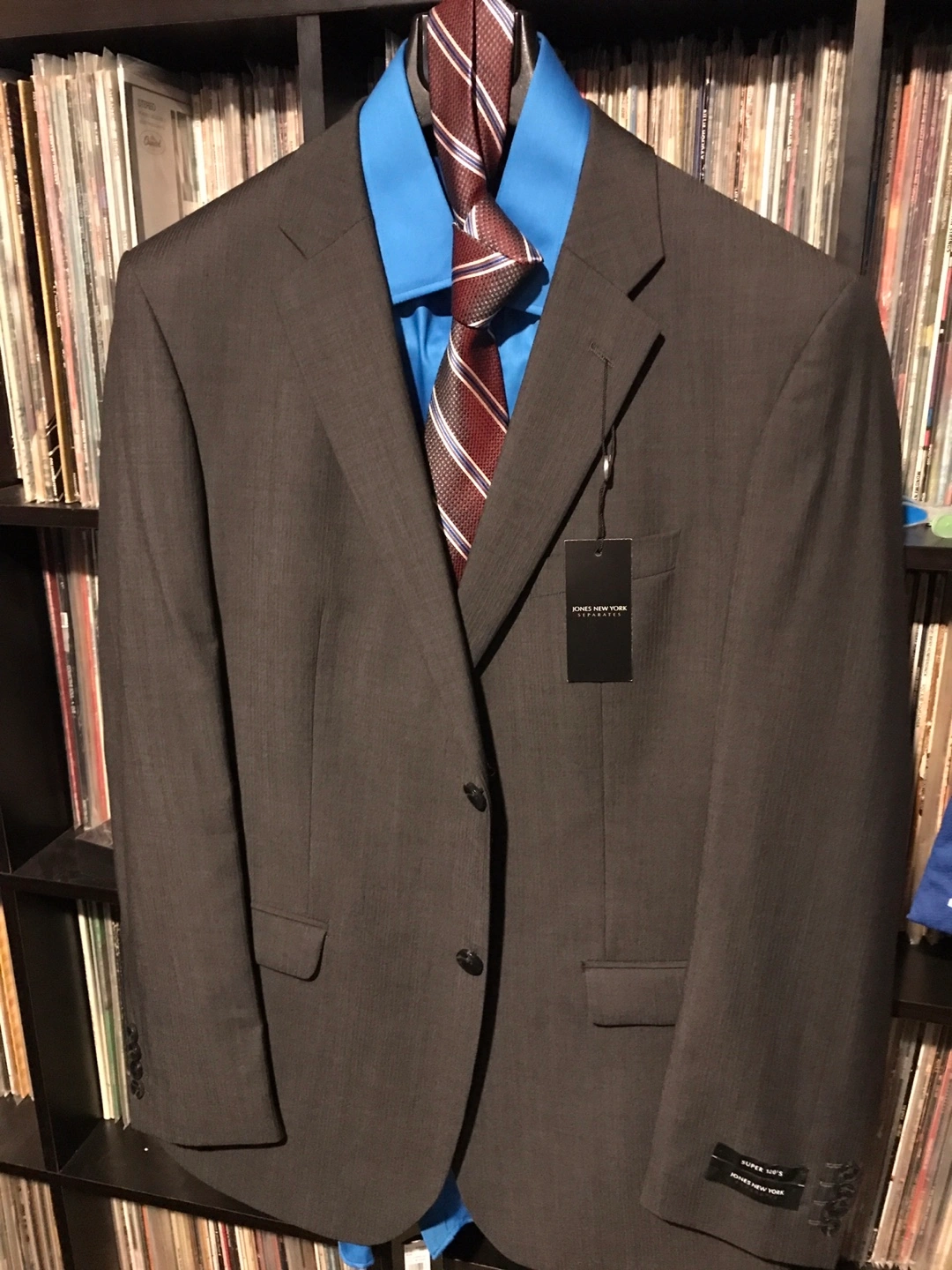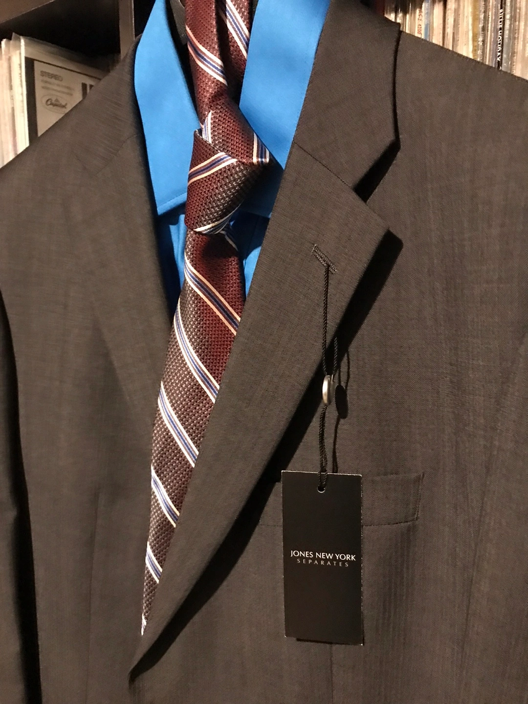 Jones New York Men’s charcoal suit jacket, size 44 Tall. Bellisimo Shirt 16.5” tall Pants 38” W New with tags. (Tag prices $464.97, $69.97, $48.97 for the suit, pants, tie and shirt!) $250 for all!