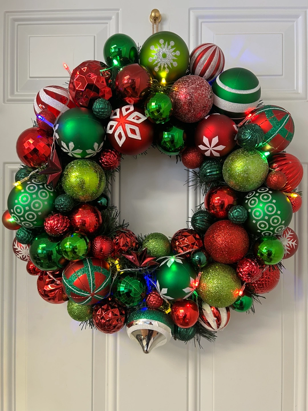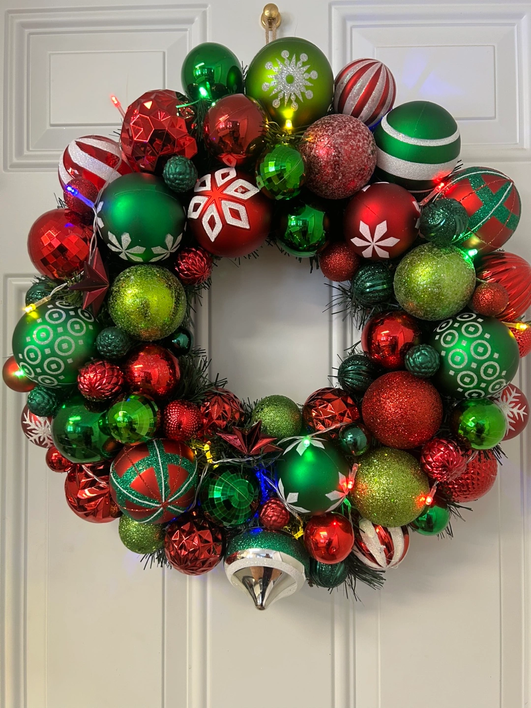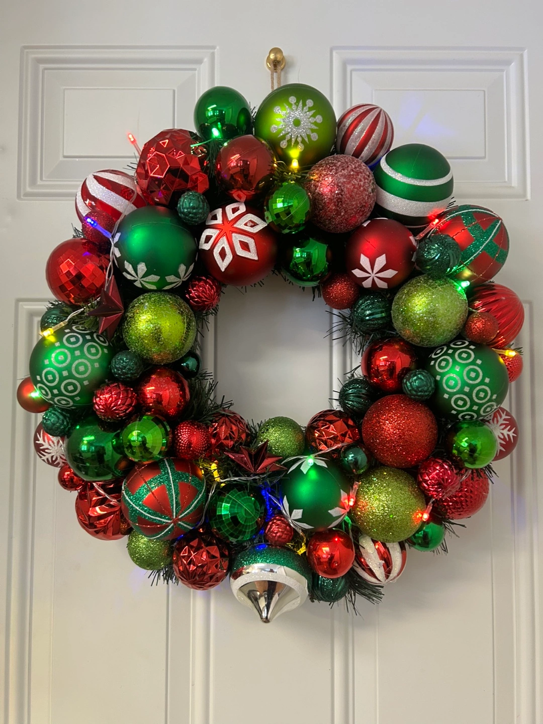 Red and green Christmas wreath with lights Brand New Handmade Smoke Free home Pickup in Horseshoe Valley