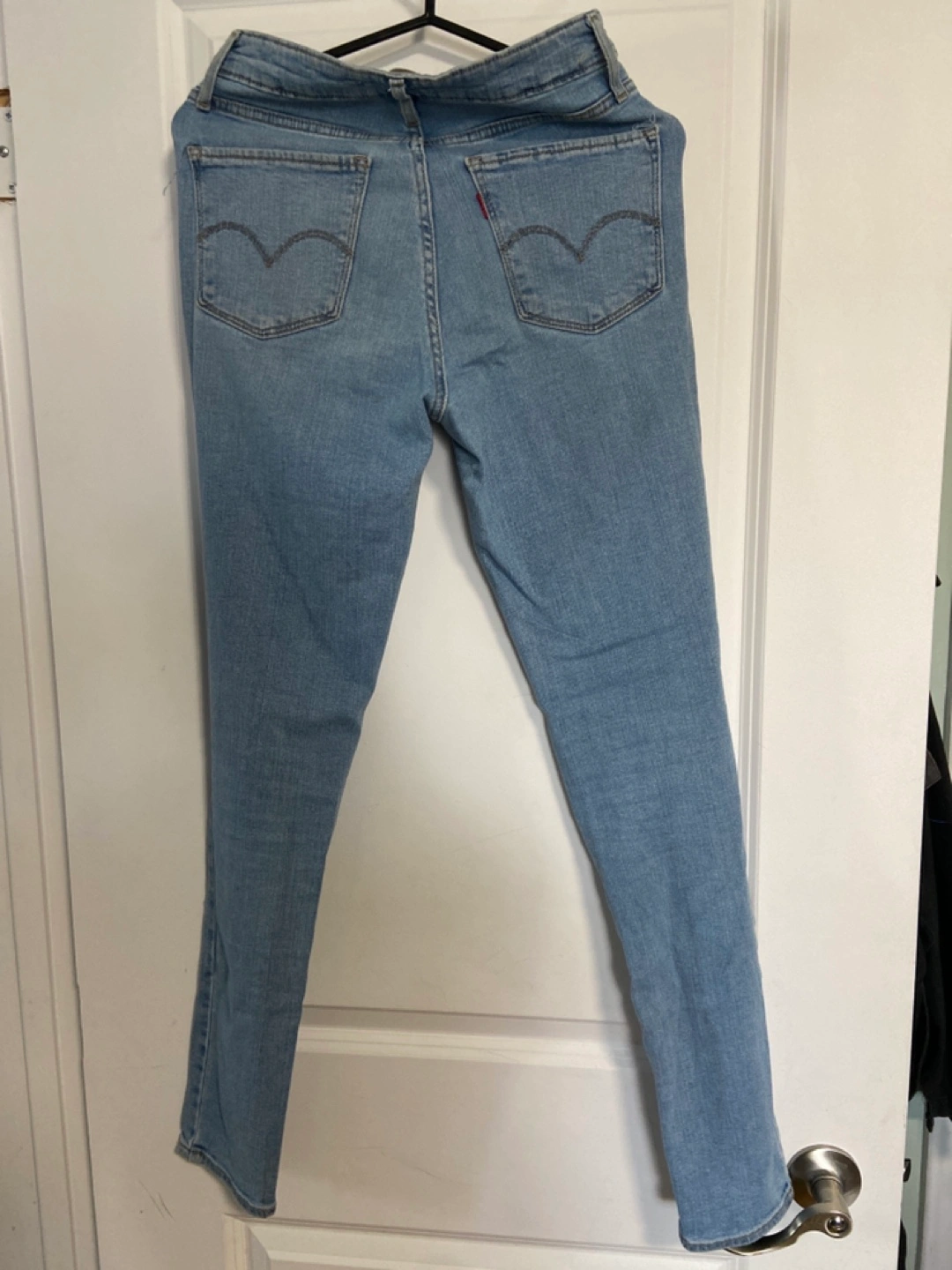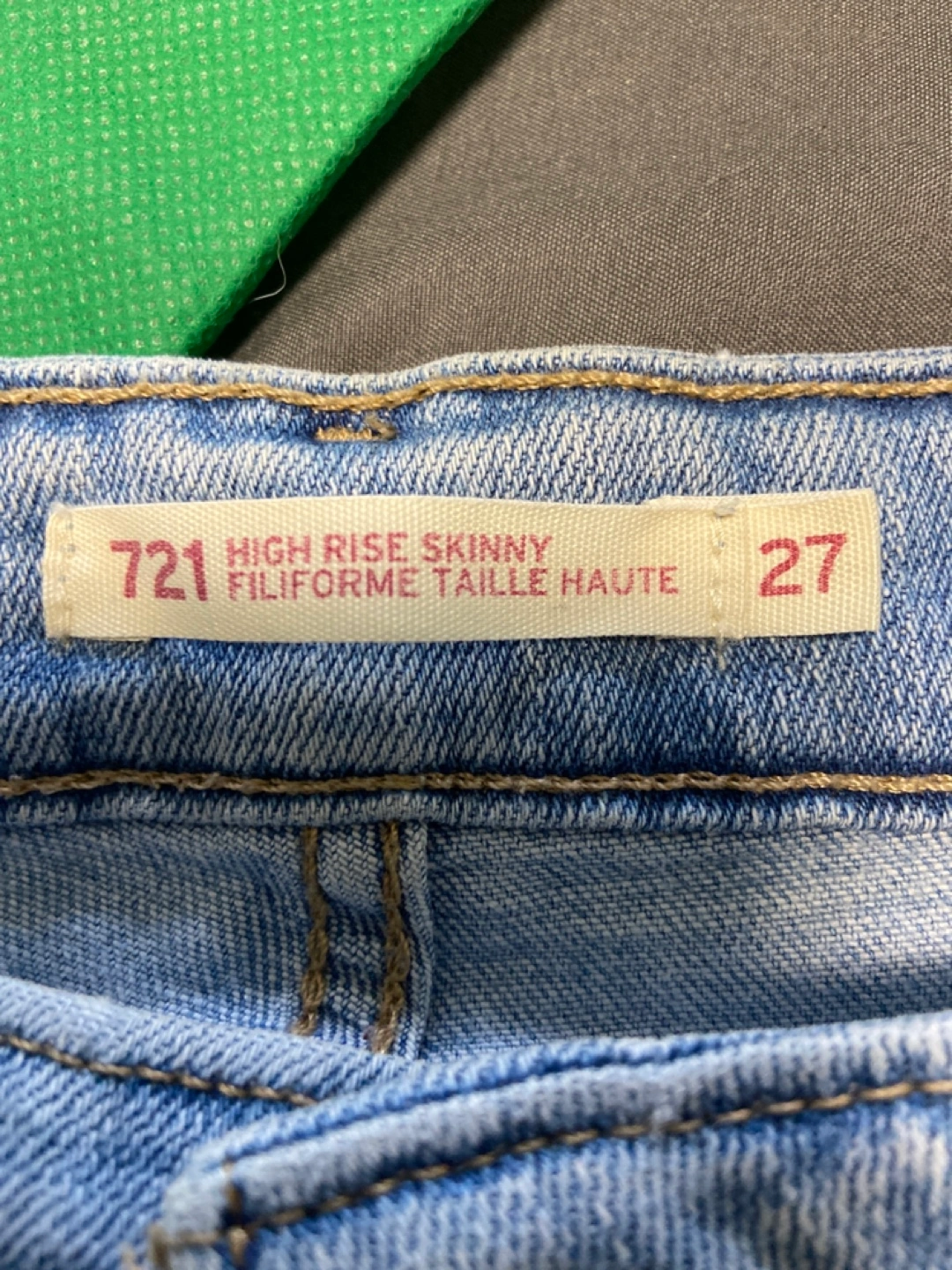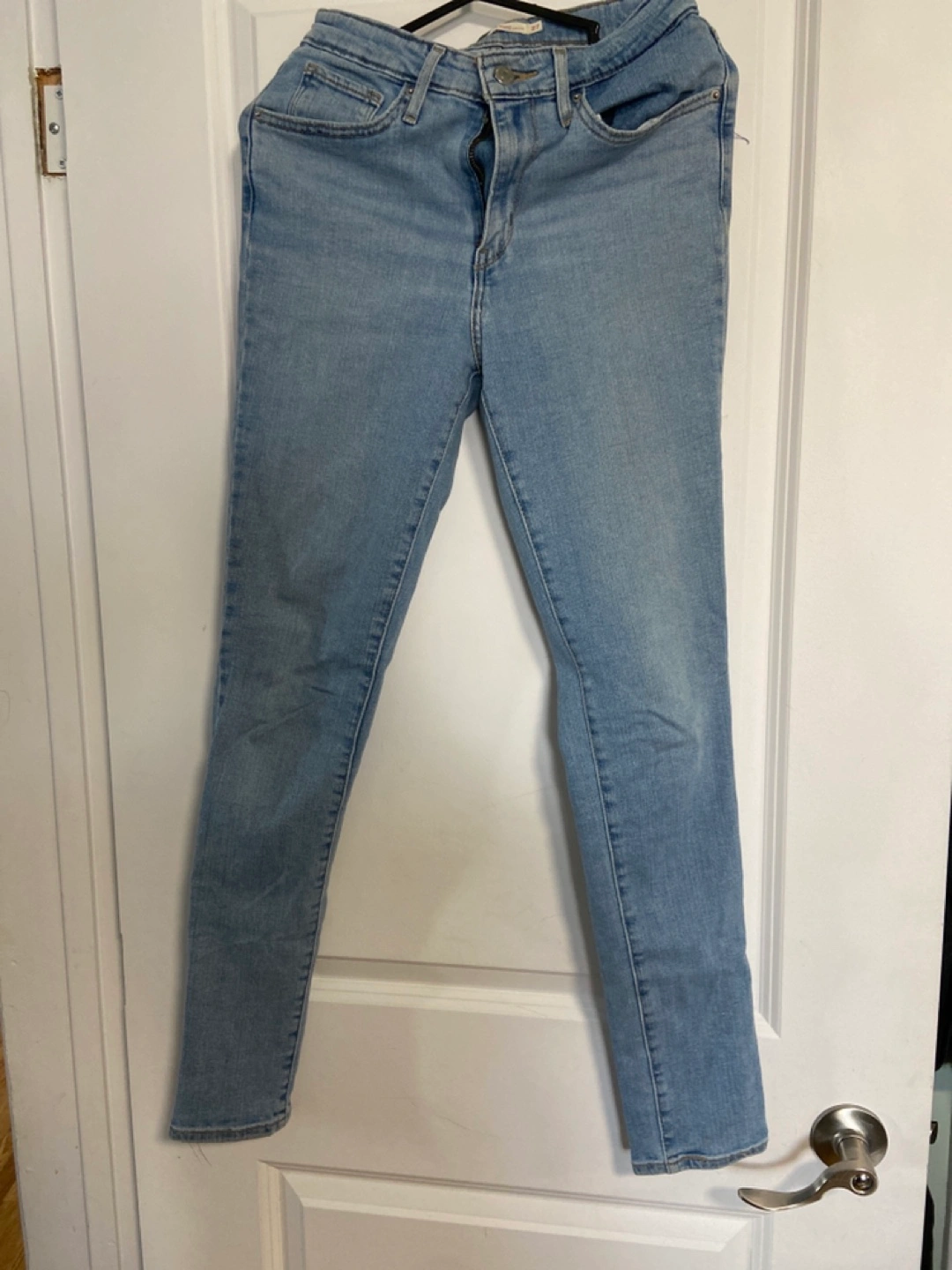 Light wash blue denim, high rise skinny fit jeans. Size 27, length 30.