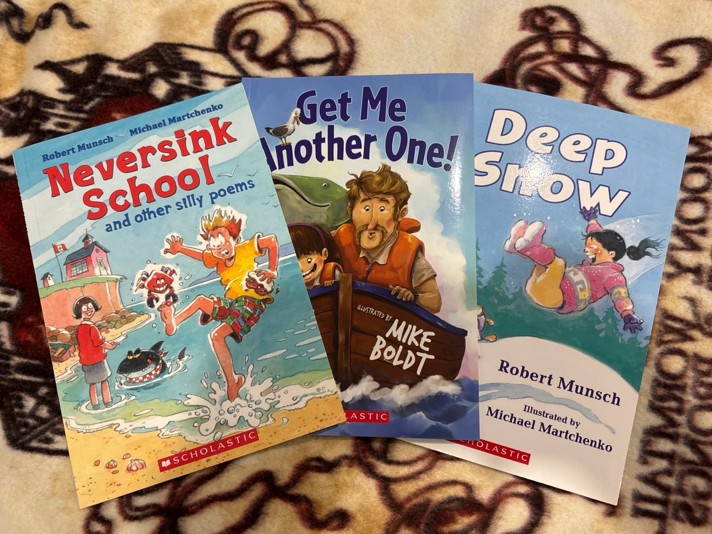 Set of 3 Robert Munsch books: Neversink School, Get Me Another One!, Deep Snow. All published by Scholastic.