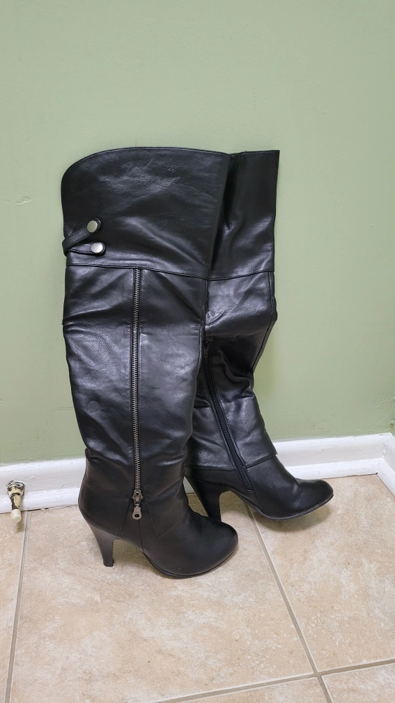 Black leather knee-high boots with a heel. Zipper on the side. Great for any occasion. Must be willing to pick up around 404/Sheppard area.
