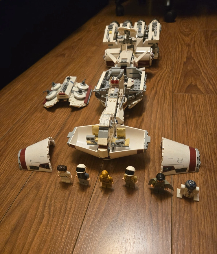 Like new Lego Star Wars Tantive IV, in accordance to bricklink listings. Recently cleaned, images on listing are older. All play features in tact with stickers and instructions, box not included. Minifigures have not been played with and are in perfect condition - comes with their accessories too (Cash only & Pickup)