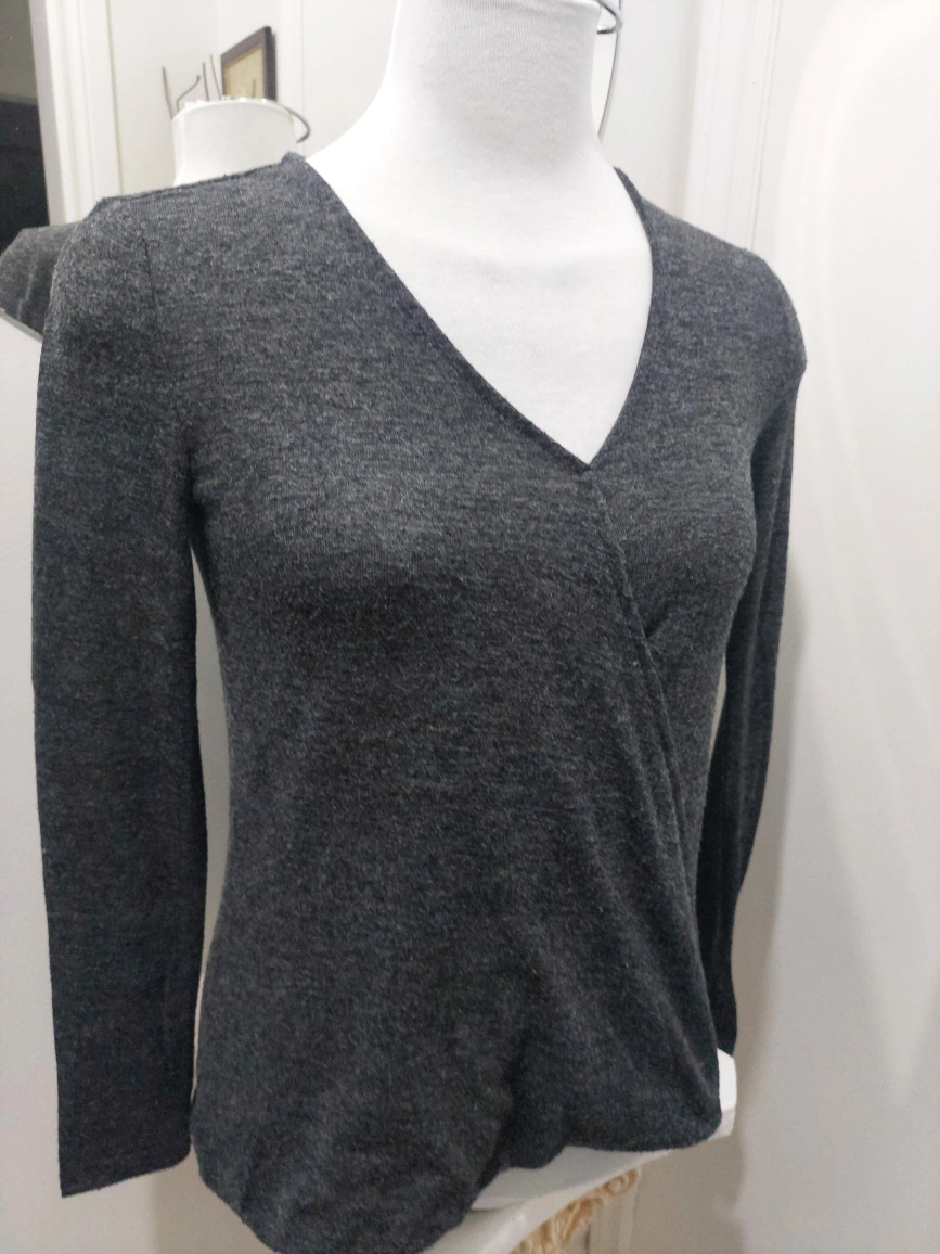 Long sleeve V neck wrap top. Grey in colour. Recently laundered. From a clean smoke - and pet free home .