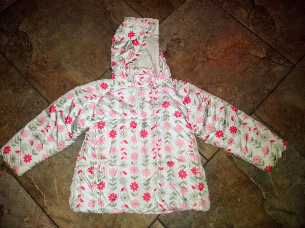 White warm winter coat with pink and red flowers made by Joe Fresh used for only a couple of months. In excellent condition. Girl's Size 5