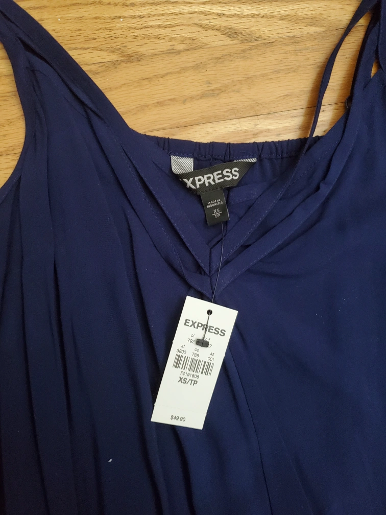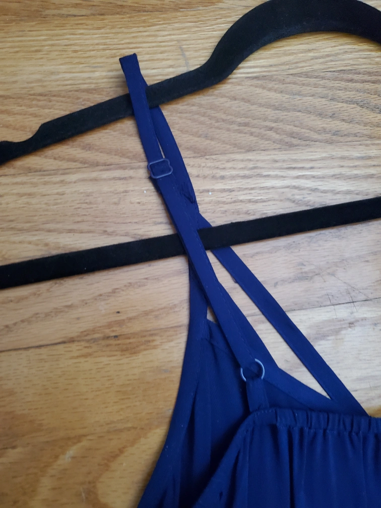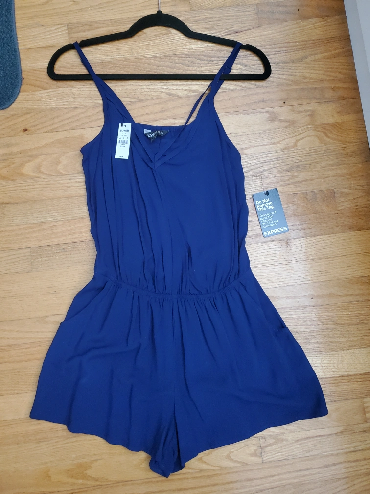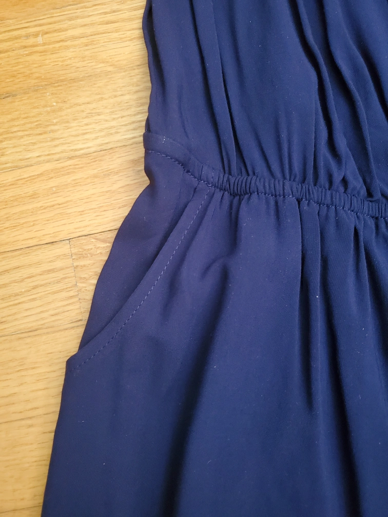 Navy blue romper with adjustable straps and pockets. Size XS/TP Meet up at Jane and Alliance