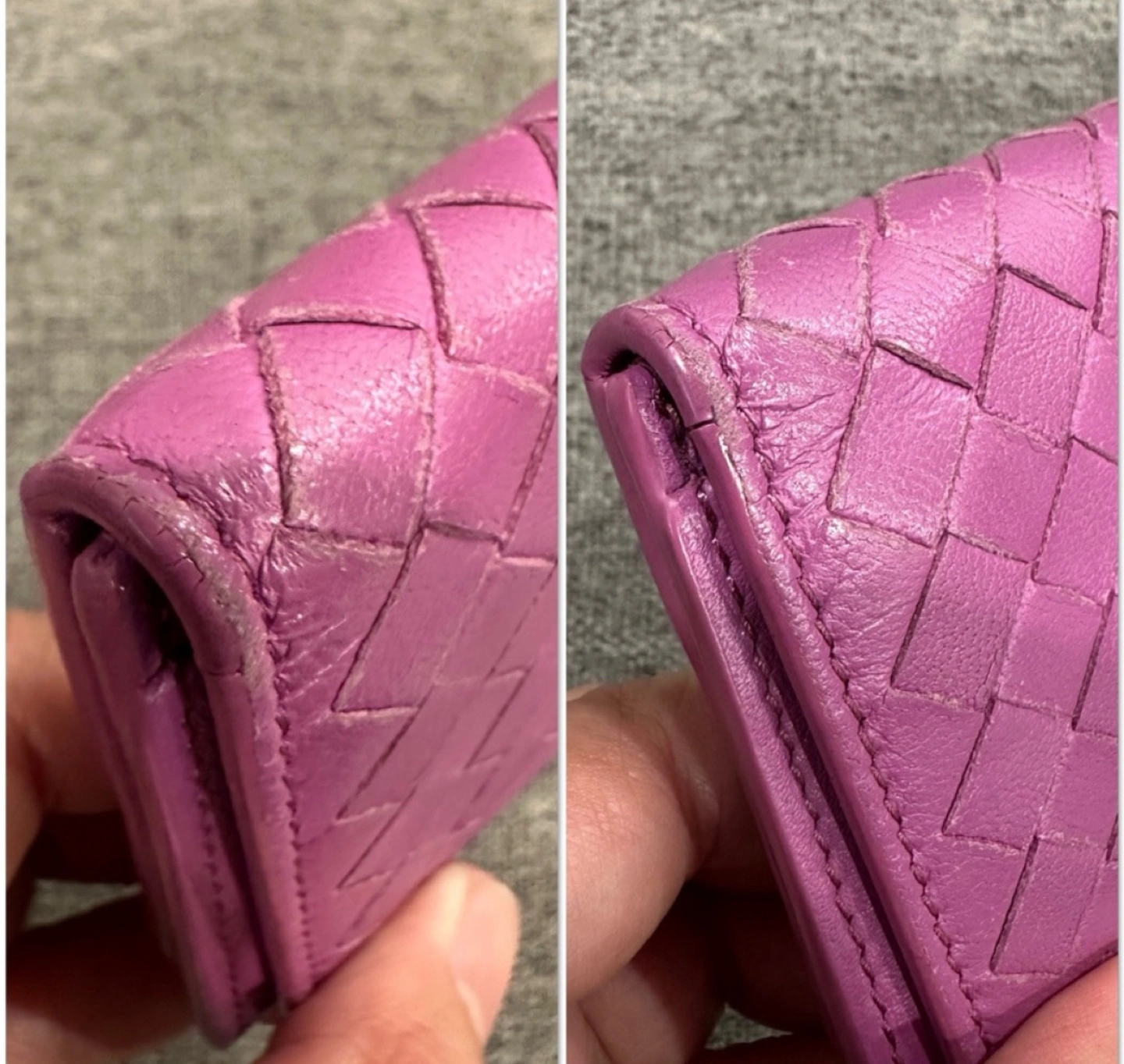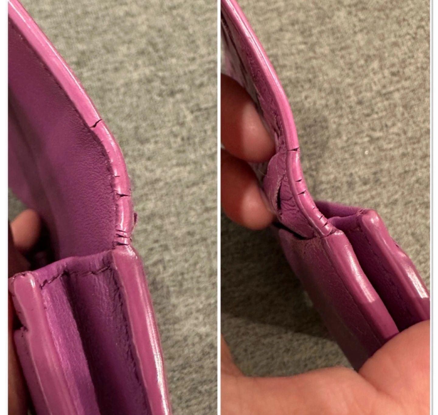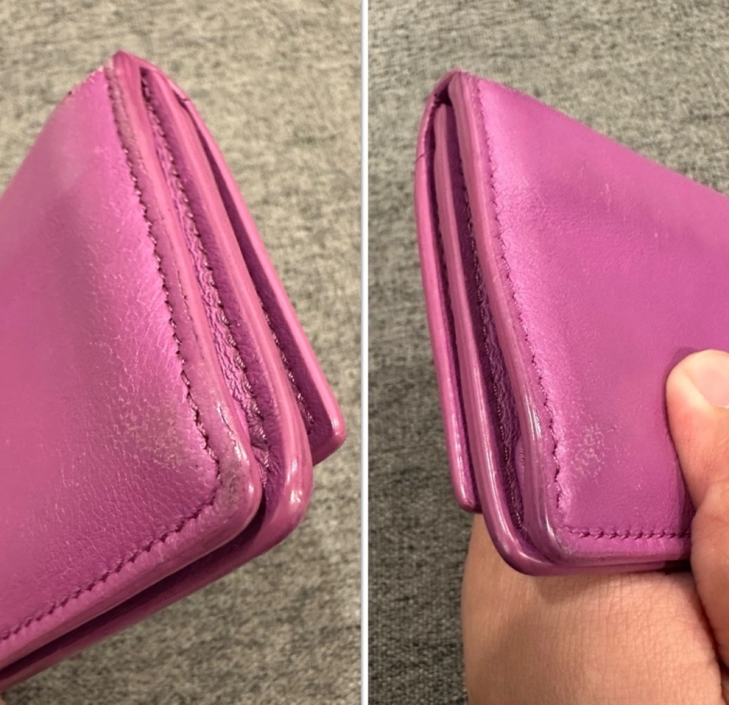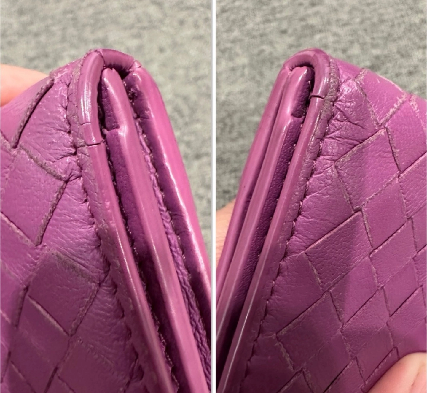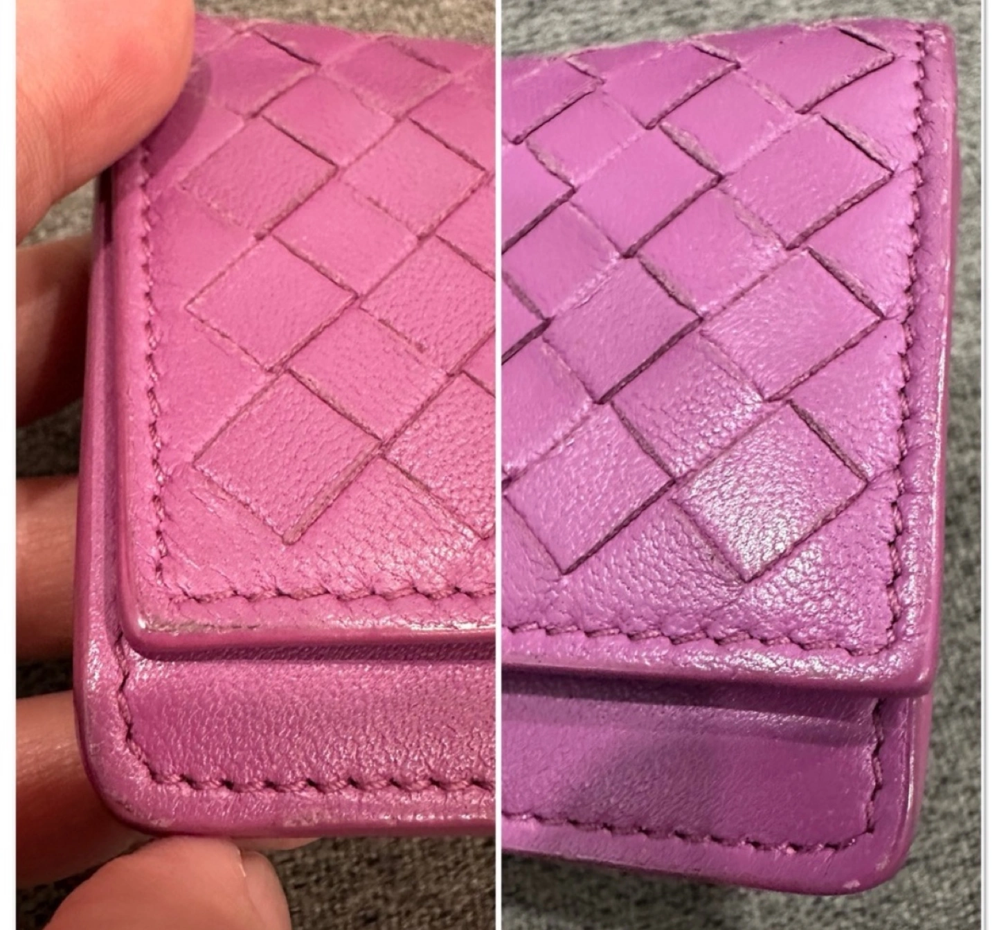 💯 Authentic Bottega Veneta Card Case with snap button closure. Purple leather with leather lining & single Interior Pocket with Card Slots. I put 9 cards for capacity reference and it didn’t look bulky. In good preloved used condition. There are no stains or color transfers. There are minimal rubbings and crackings as highlighted in the posted images. The minimal flaws mentioned don’t affect the full functionality of this card case. Still in bright purple color. Please refer to images for measurements.