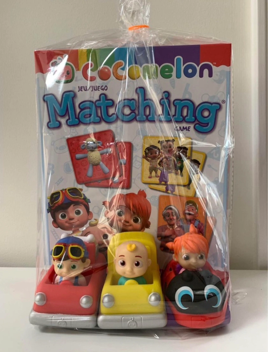 Cocomelon Easter present includes: -Matching game -JJ car -Yoyo -Tomtom car All items are new.