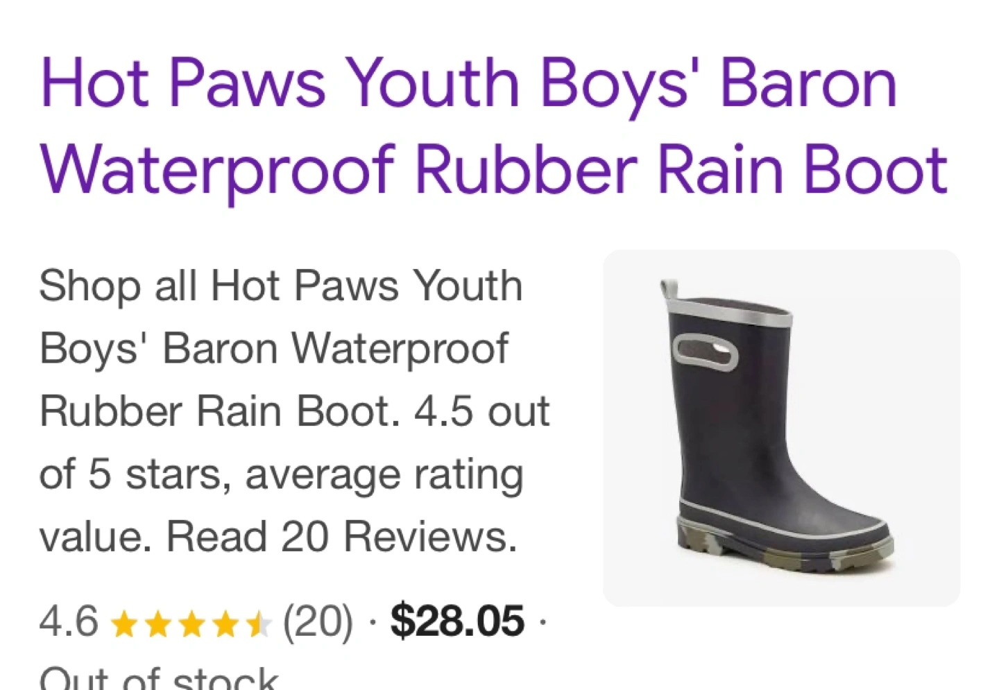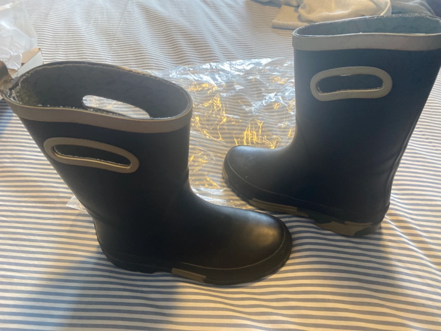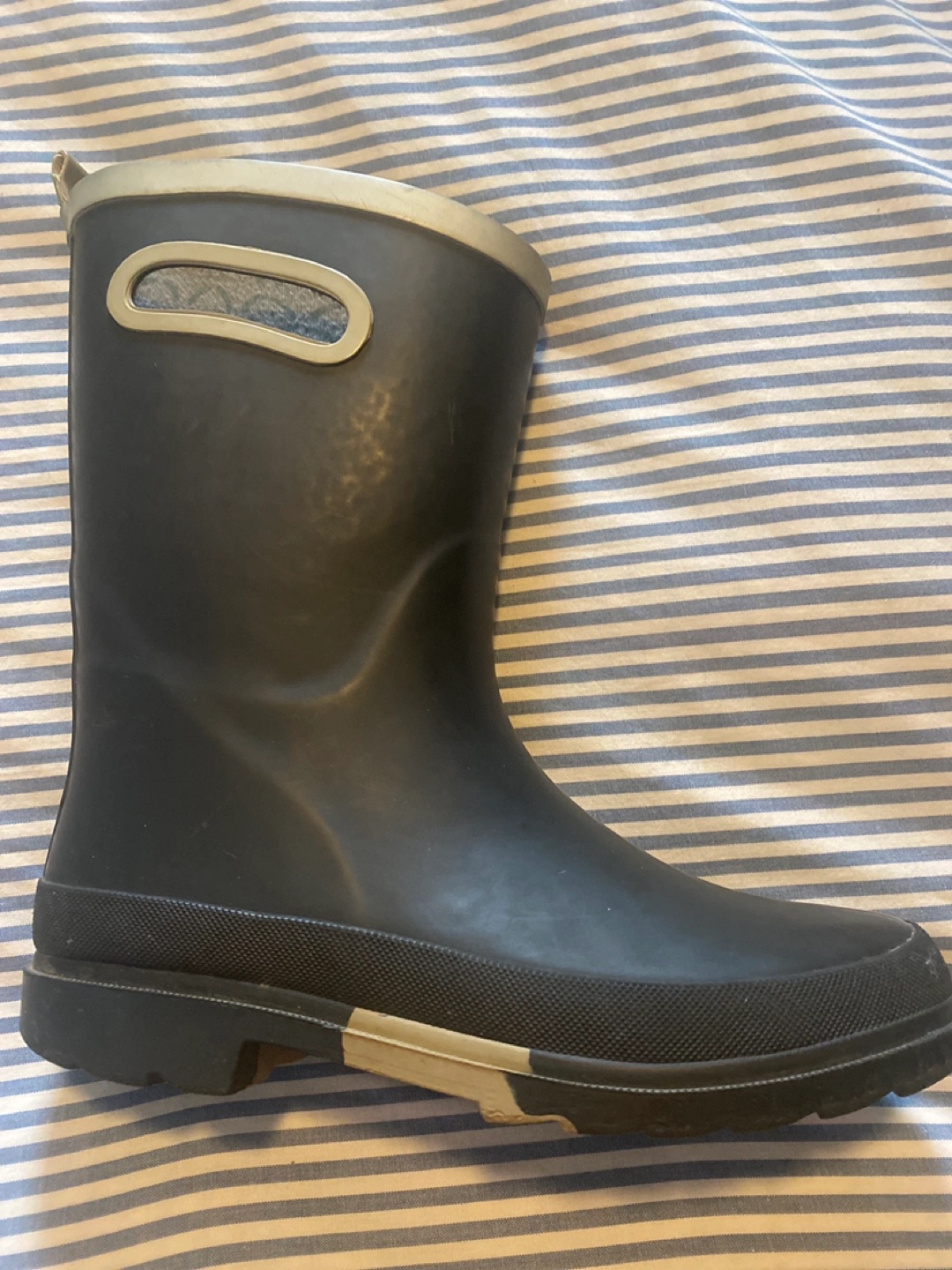 Black rain boots with grey trim. Size 2 youth.