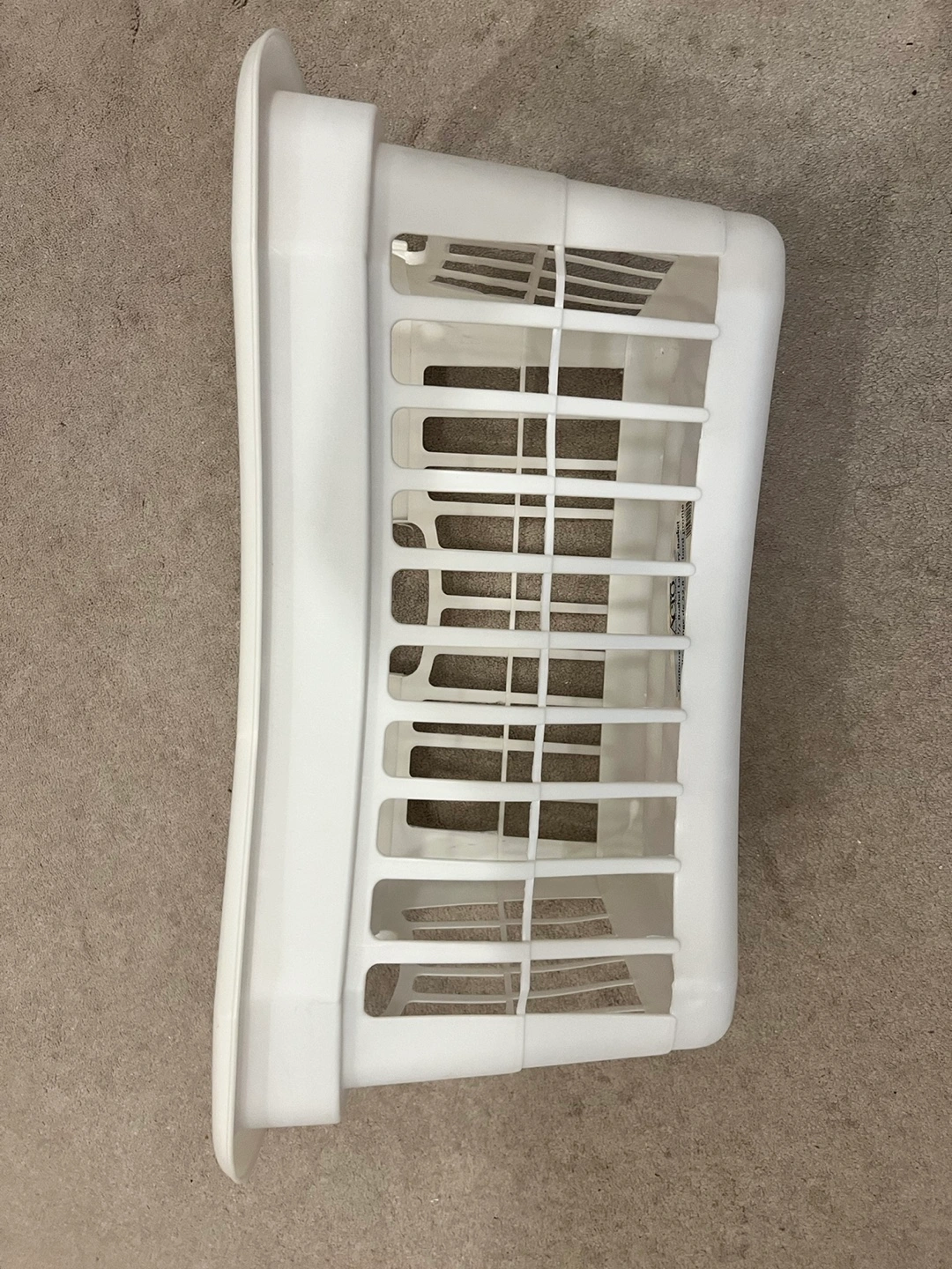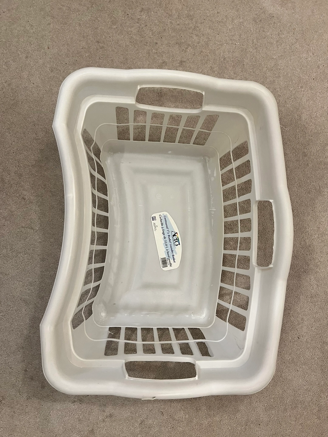 2 White laundry basket. Great for small spaces. Made of plastic.