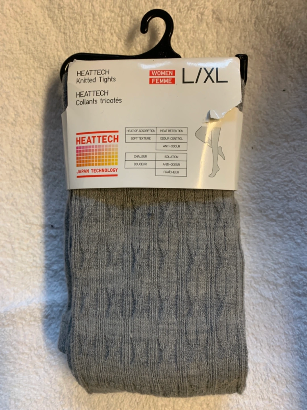 Heattech knitted tights, size L/XL, gray colour. Cable knit pattern.