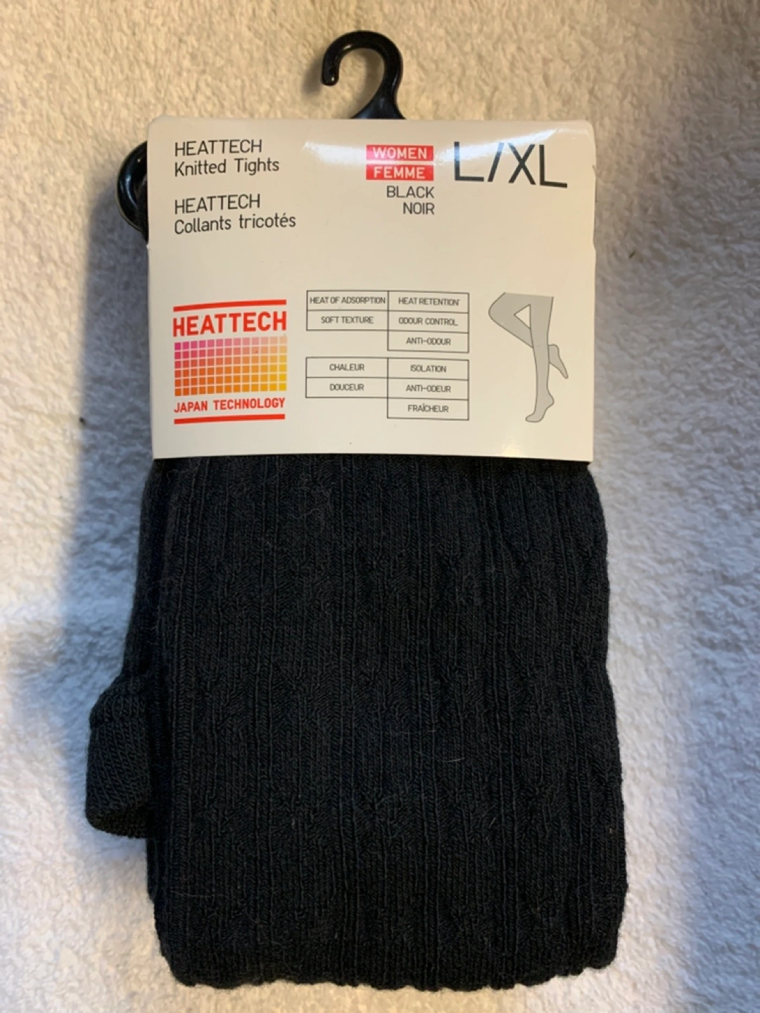 Black knitted tights, size L/XL. HEATTECH Japan Technology.