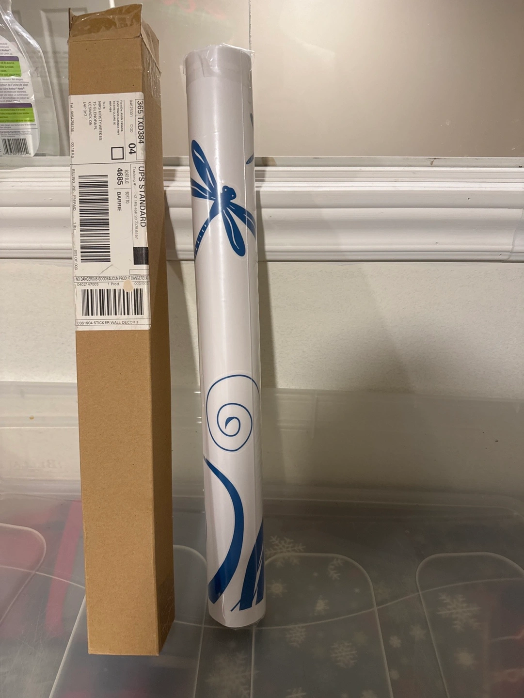 Wall decal with a dragonfly design. Comes in a roll, brand new in packaging.