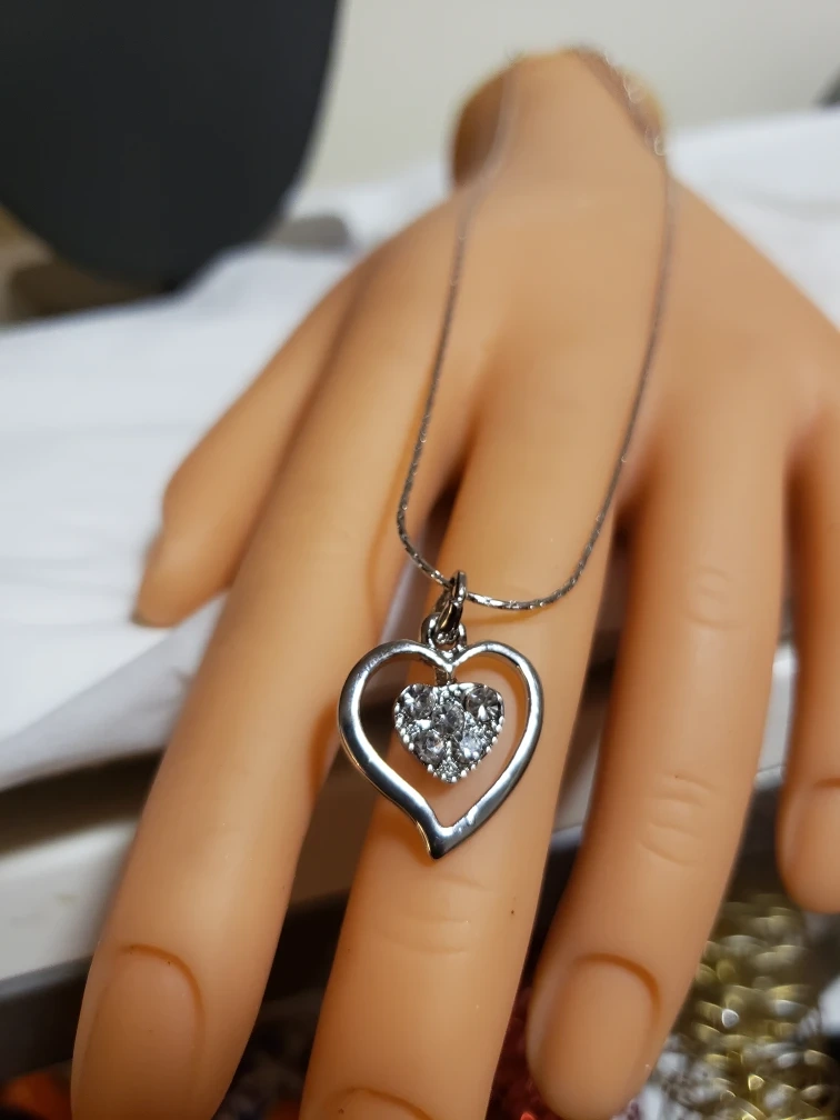 Silver chain with a heart pendant encrusted with small clear stones. perfect for Christmas gift