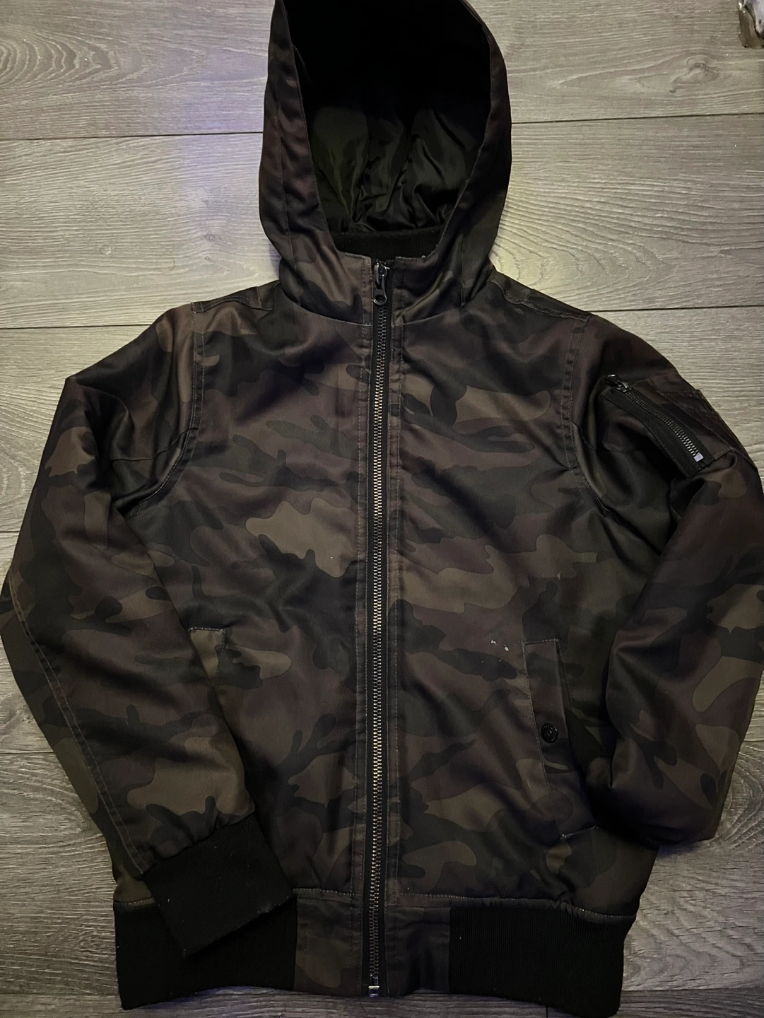 Camouflage bomber jacket with a hood. Size M/M (10/12).