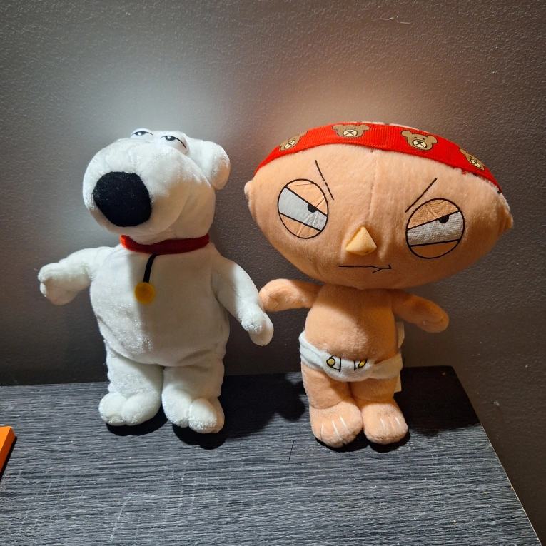 Three plush toys from the popular TV shows Family Guy and The Simpsons. Brian Griffin, Stewie Griffin and Krusty the Clown. All are in good condition.