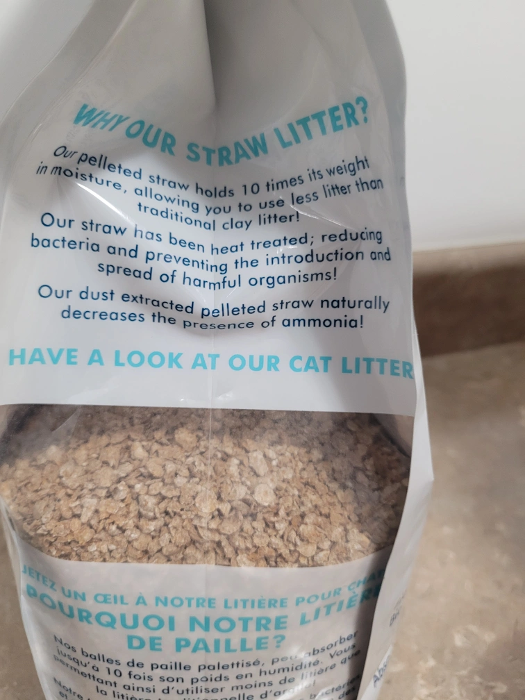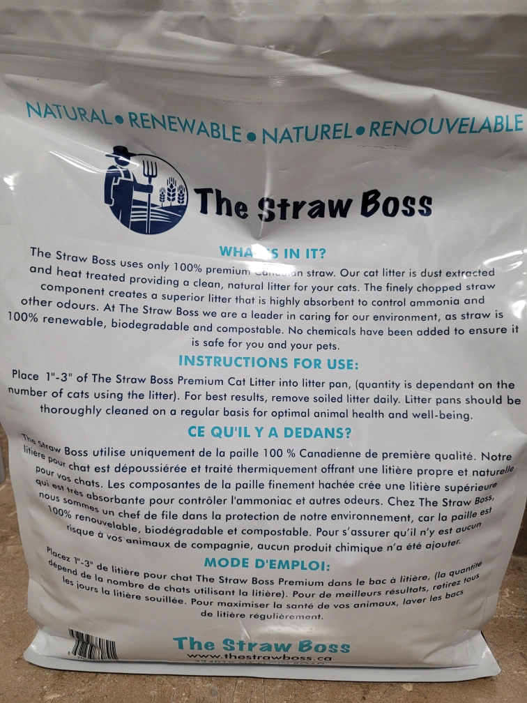 7lb bag of The Straw Boss Premium Non-Clumping Cat Litter. Made with 100% Canadian straw, it's dust extracted and heat treated, making it safe for cats and the environment. The litter is non-clumping, absorbent and biodegradable. I purchased it at FreshCo (Leslie & Eastern). I used the first bag with my herbivore pets and they wanted to eat it, not poop on it. I missed the 14 day deadline to return this unopened bag. I paid $12 + tax. Btw, it is a straw product, but I think it smells like corn litter. It is pretty well dust-free. I'm sure this is a great product for a CAT. But not for bunnies, guinea pigs etc. Location: Greenwood & Danforth area Pick-up location: flexible Payment: Cash only, please