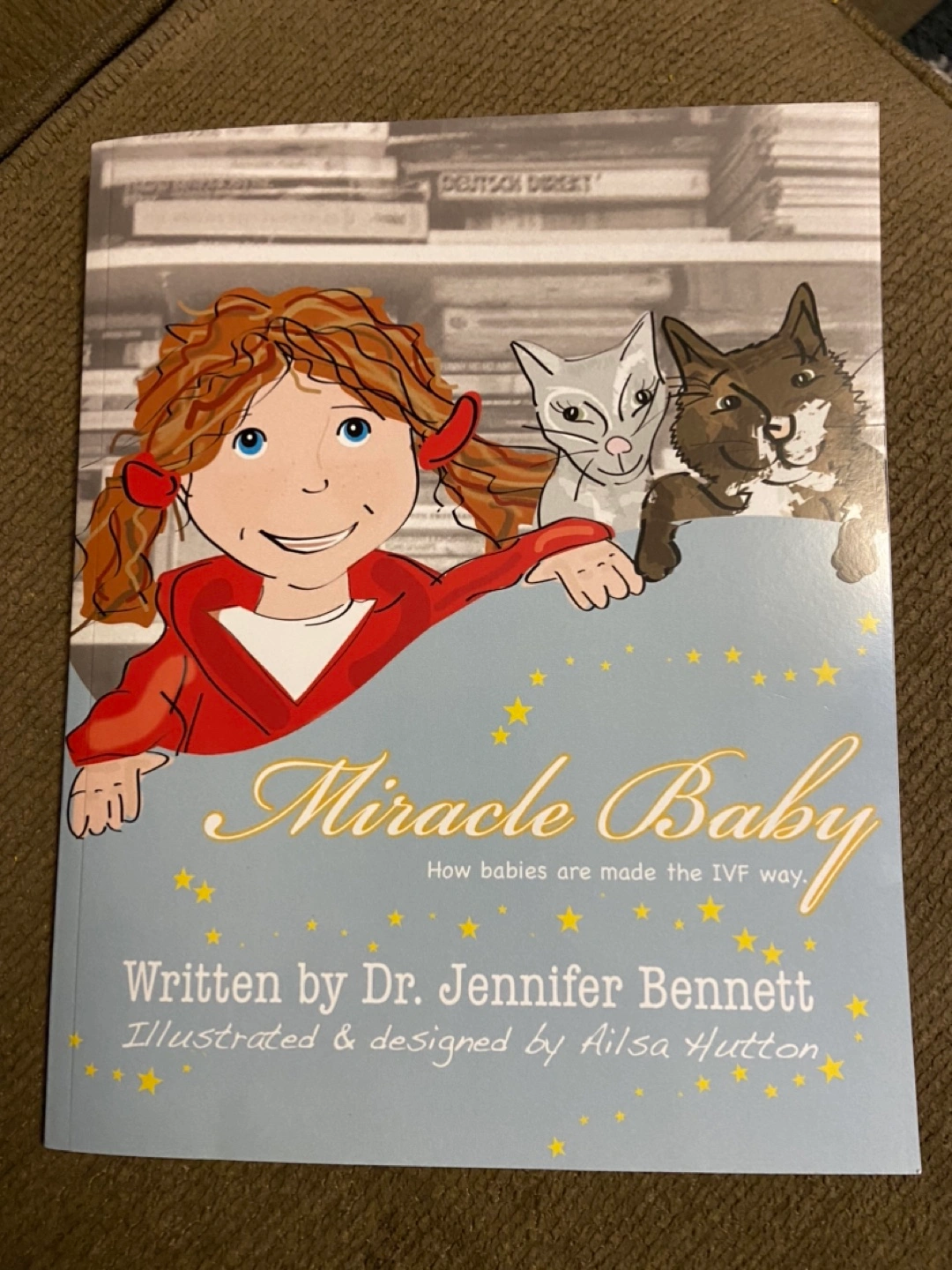 Children's book about IVF. Written by Dr. Jennifer Bennett. Illustrated and designed by Ailsa Hutton. Bought for a friend but she’s a single mom and doesn’t have a partner like the book talks about Just bought on Amazon for $20 plus tax