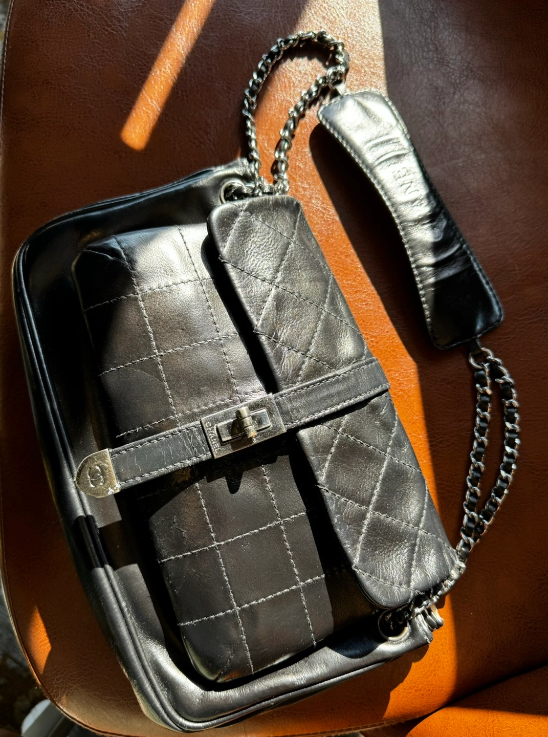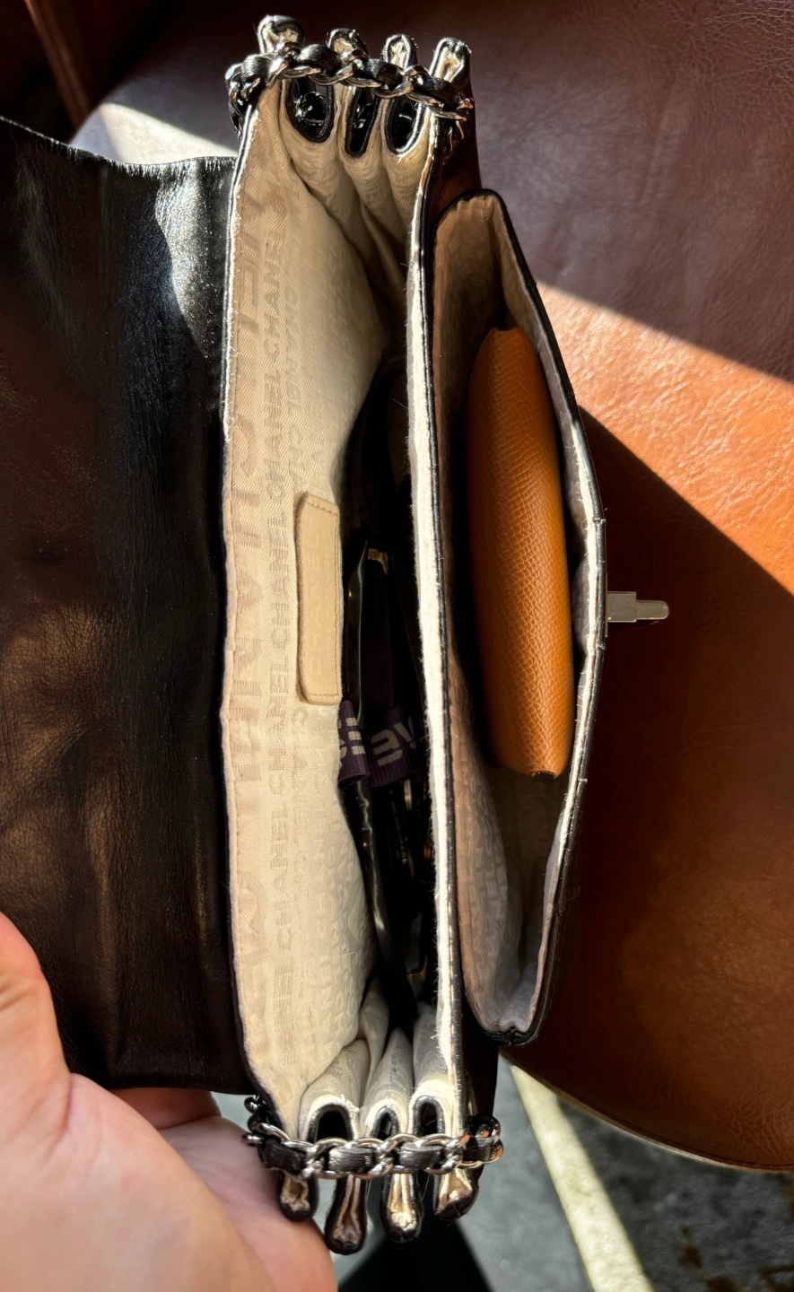 This is a well loved vintage Chanel Lock Accordion bag. It is still in great usable condition - selling it as I need money for school. 100% authentic! CASH ONLY. Final SALE. Pick up near PNE or can meet you somewhere convenient!!