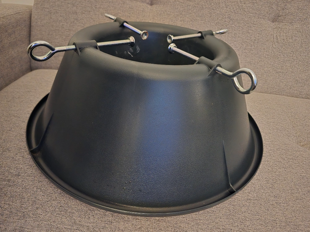 Tree stand, holds trees up to 80 pounds. Large water reservoir, self-threading bolts for quick and easy setup. 19 inches in diameter, 7.2 inches tall. Bought it new 2 weeks ago.