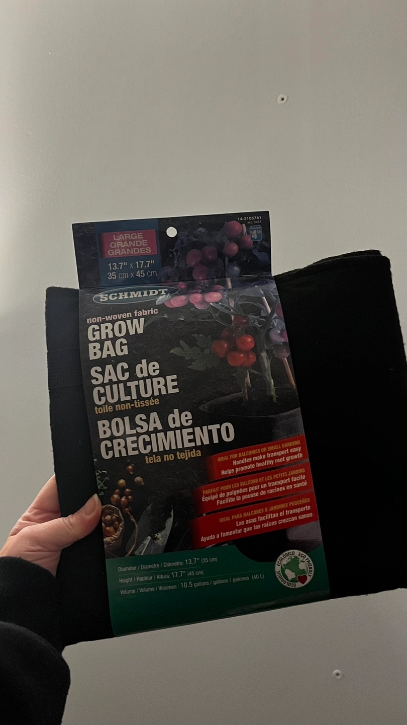 Fabric grow bag. Ideal for balconies or small gardens. Handles make transport easy.