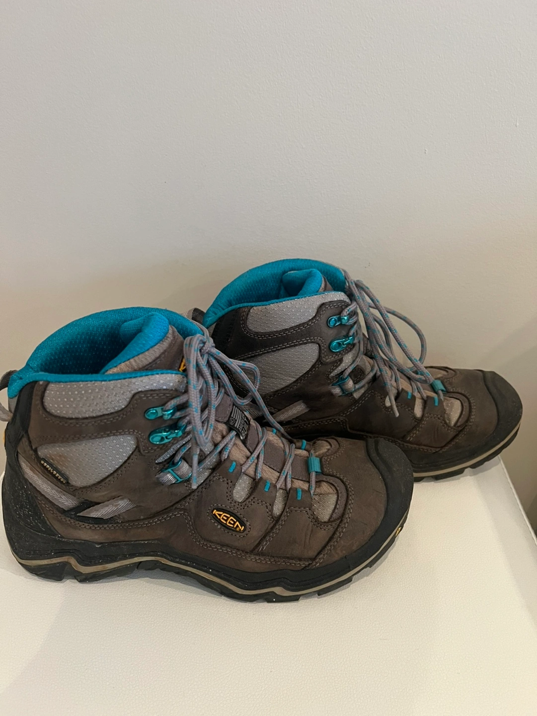 Grey and blue hiking boots. Lace-up closure. Good condition. Best hiking or winter boots around! Ladies Size 10