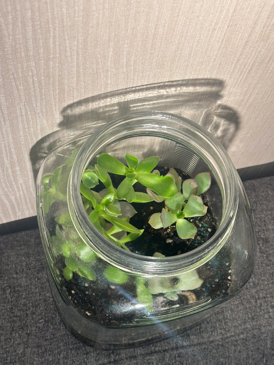 Succulent terrarium in a glass jar. Smoke free, clean home.