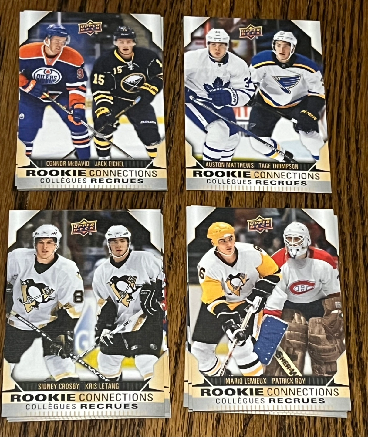 Complete set of 15 Tim Hortons 2023-24 hockey card Rookie Connections insert set. Cards are in perfect condition. Includes McDavid, Crosby, Ovechkin.