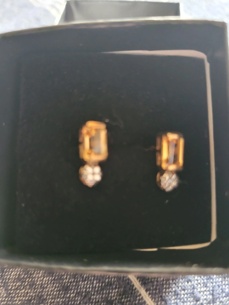 10k yellow Gold tone earrings with gemstone accents. Comes with box.