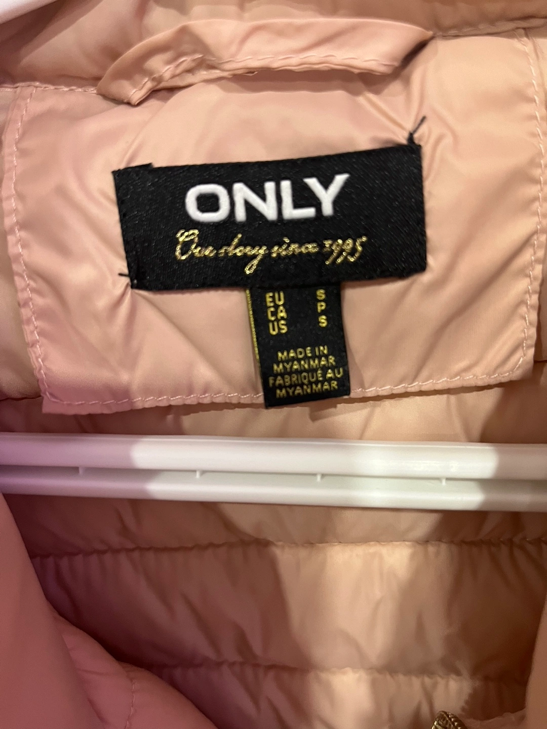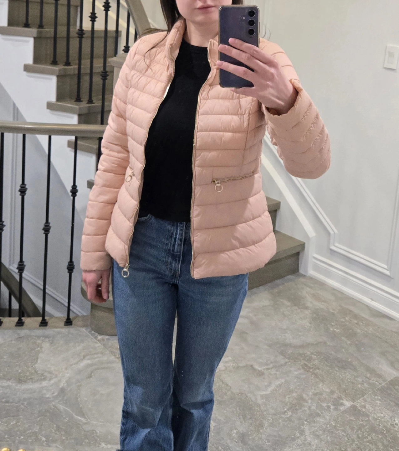 Light pink puffer jacket with beautiful gold accents and zipper. Size small.