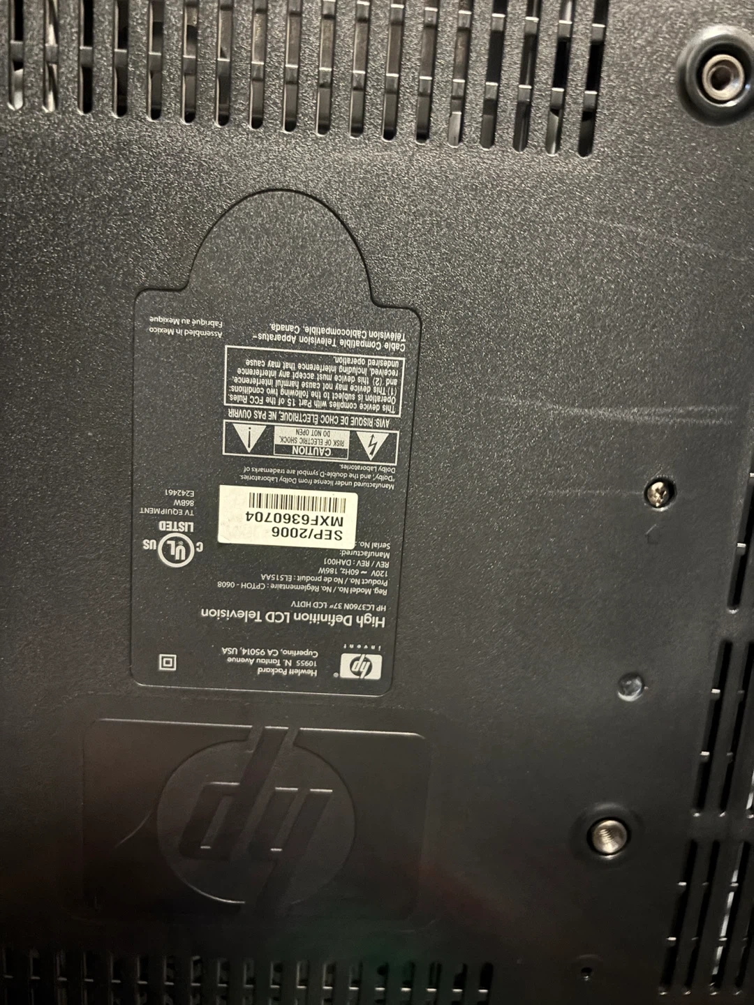 Selling a HP High Definition LCD Television. The model number is MXF6360704. This is a great television! No remote control