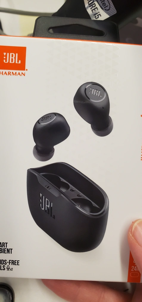 Black wireless earbuds with a charging case. Comes in original packaging. #Thriftypicks