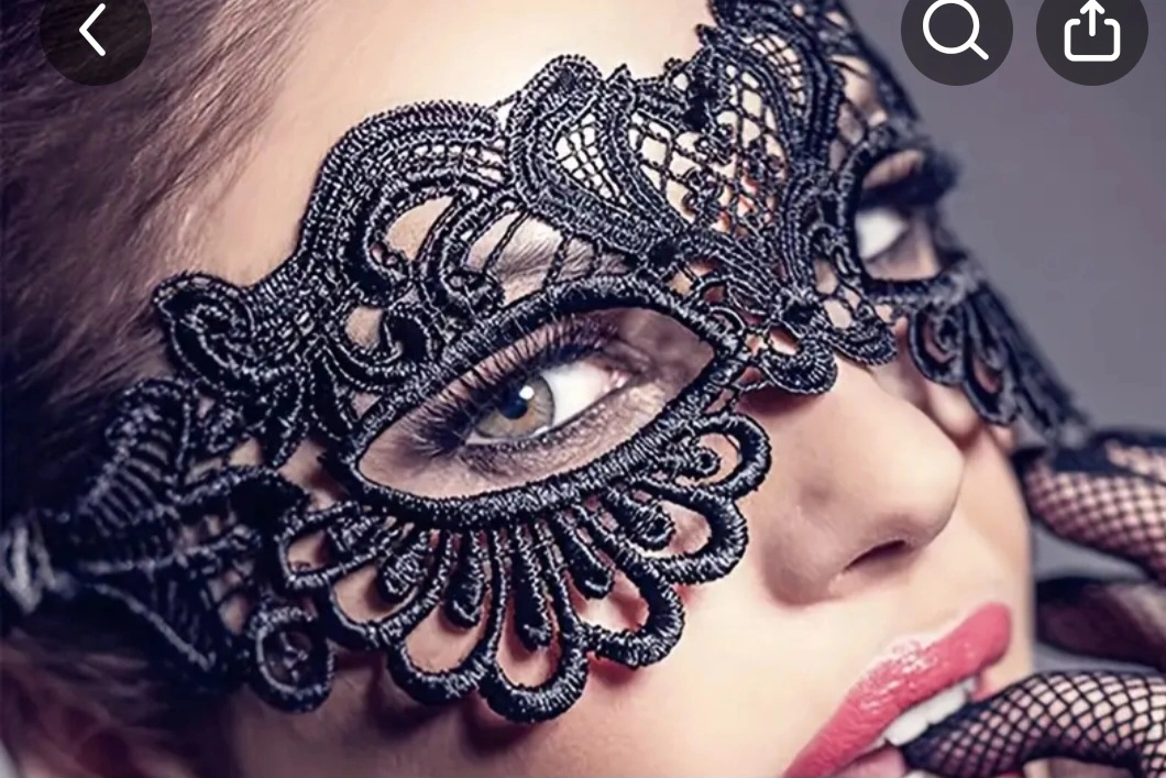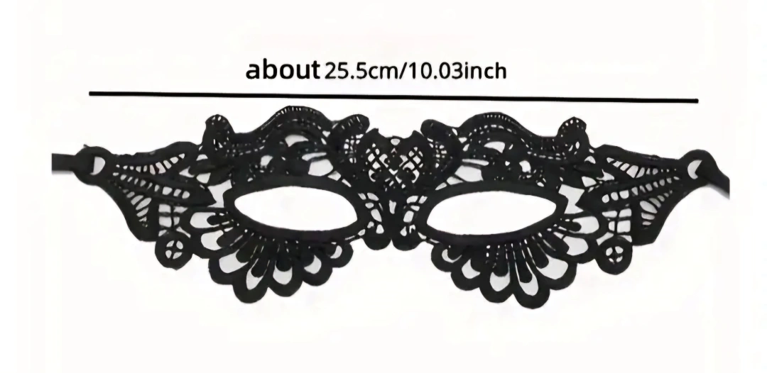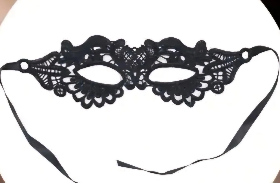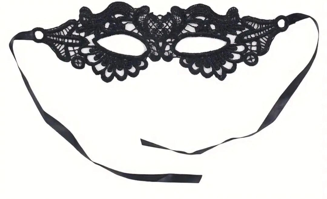 Black lace eye mask with ribbon ties. Perfect for a night out or a costume party. I bought it last week but I don't think I will get to wear it.