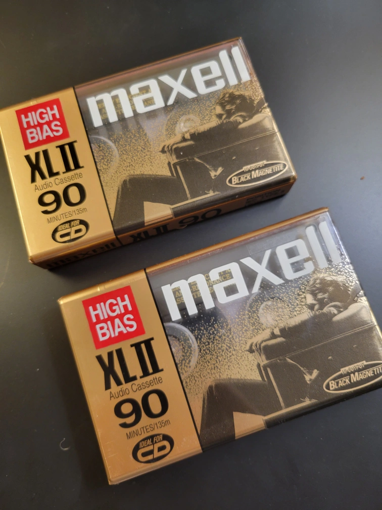 Two 90 minutes audio cassettes, high bias. Ideal for CD. Black Magnetite. Sealed 2 packs - $9 each or $15 for both