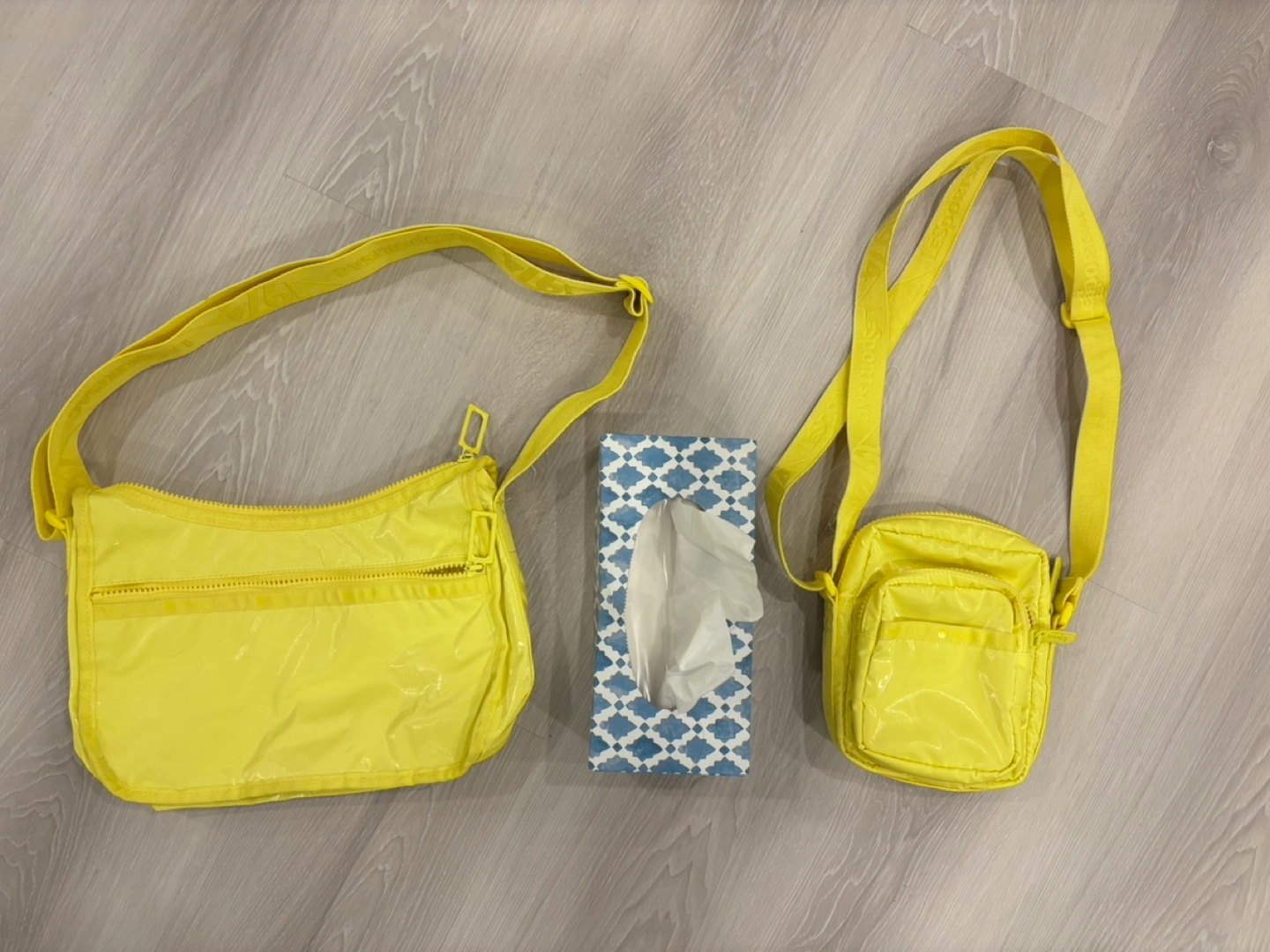 Smoke free pet free home Pick up only Yonge & Steeles Item brought to driveway Two different sized crossbody bag, priced individually. Tissue box for size reference Both features adjustable shoulder straps and multiple zippered pockets inside and out. Large everyday $45 - 2 faint marks - last 2 photos Small crossbody $25 Both for $65