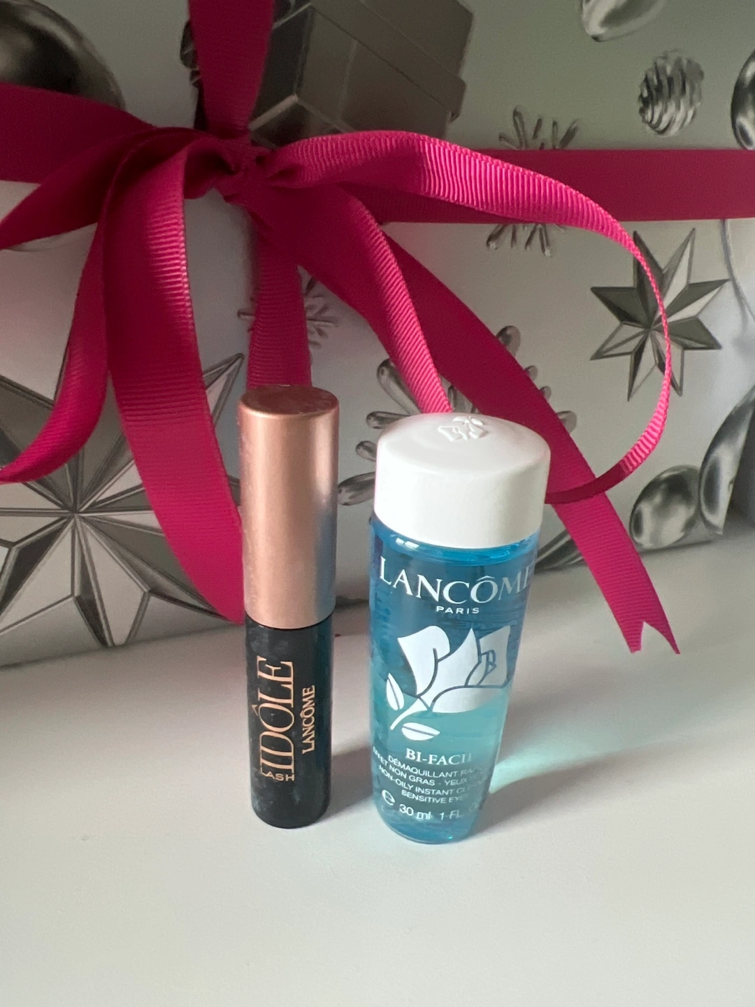Lancôme Idôle Lash mascara and Lancôme Bi-Facil Makeup Remover. Both products are in travel sizes.