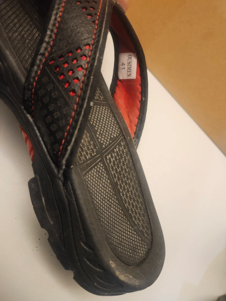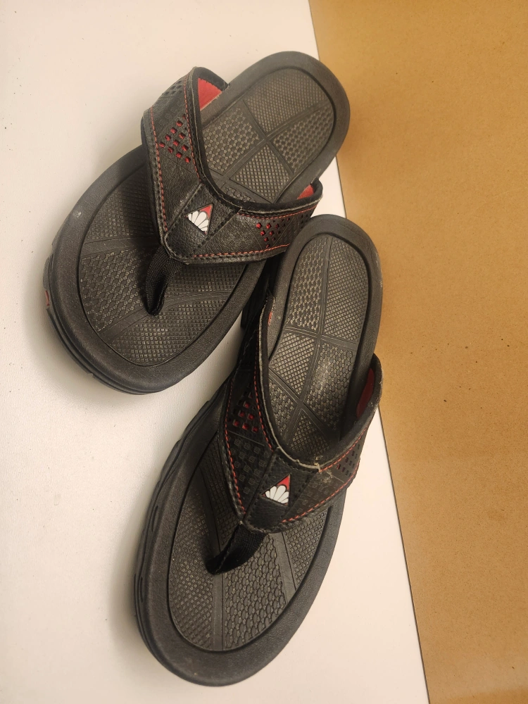 PRICE FINAL SALE PRICE NOT NEGOTIABLE. Black and red sandals with a black and red tread. excellent condition price only cash only pickup no delivery. Meet up on 801 O'Connor drive outside TD Canada Trust bank door.