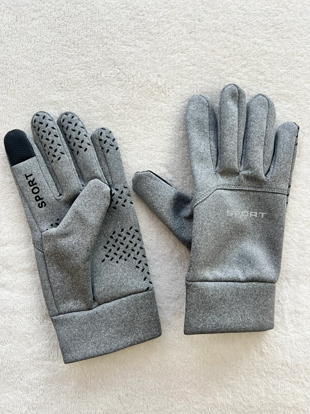 Grey running Touchscreen gloves with a fleece lining. Size:XL